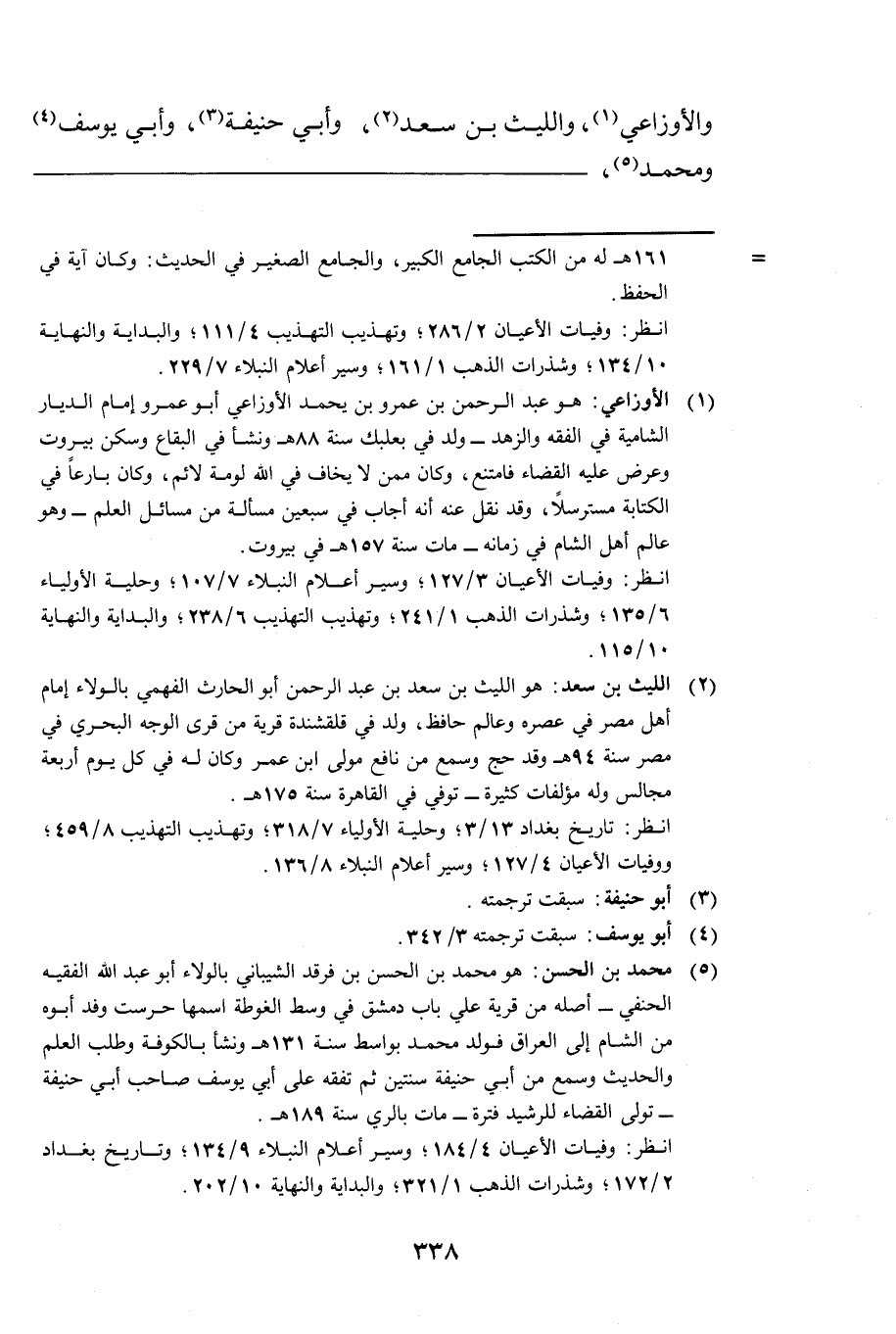وَالْأَوْزَاعِيِّ، وَاللَّيْثِ بْنِ سَعْدٍ، وَأَبِي حَنِيفَةَ، وَأَبِي يُوسُفَ، وَمُحَمَّدٍ،