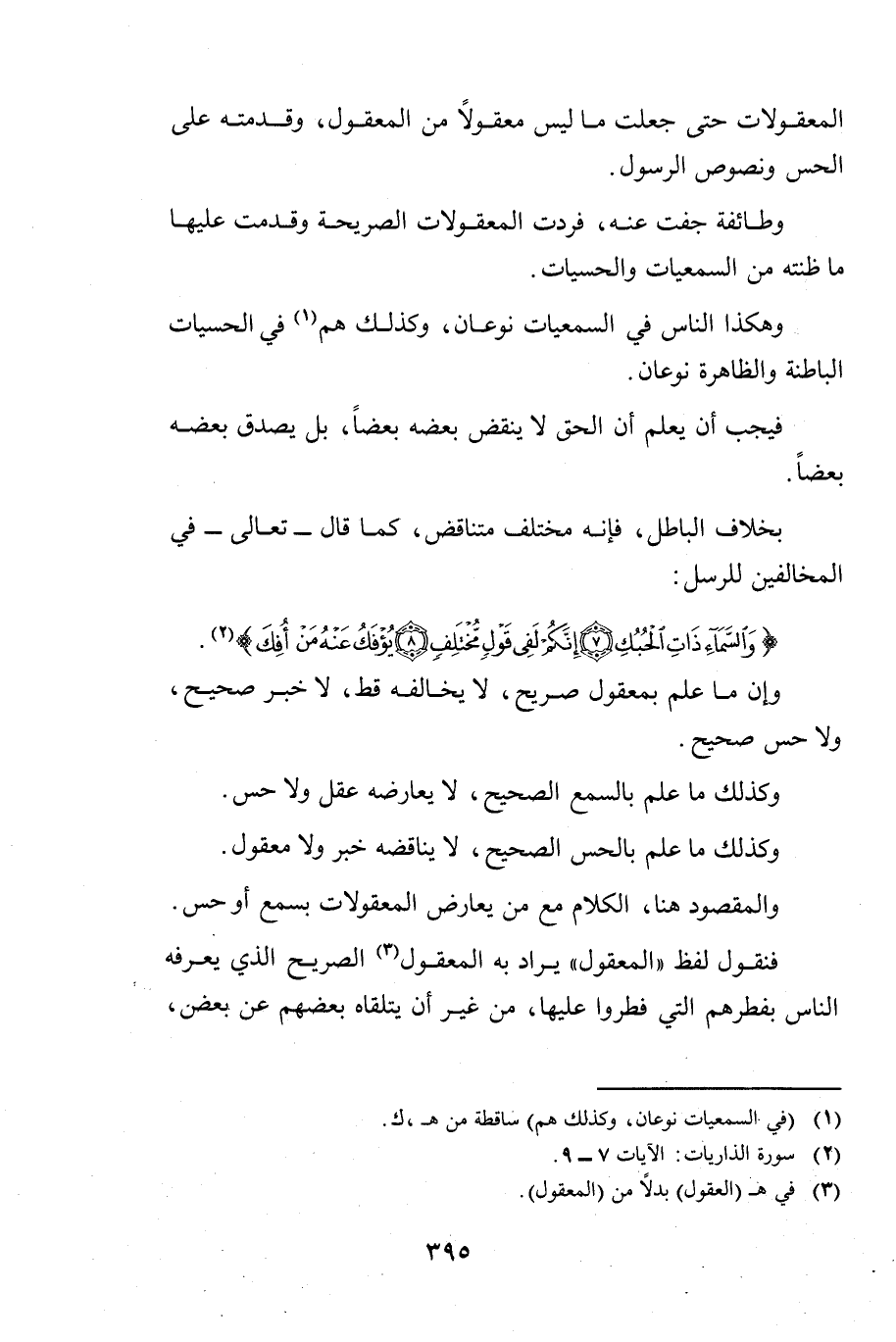وَإِنَّ مَا عُلِمَ بِمَعْقُولٍ صَرِيحٍ، لَا يُخَالِفُهُ قَطُّ، لَا خَبَرٌ صَحِيحٌ وَلَا حِسٌّ صَحِيحٌ.