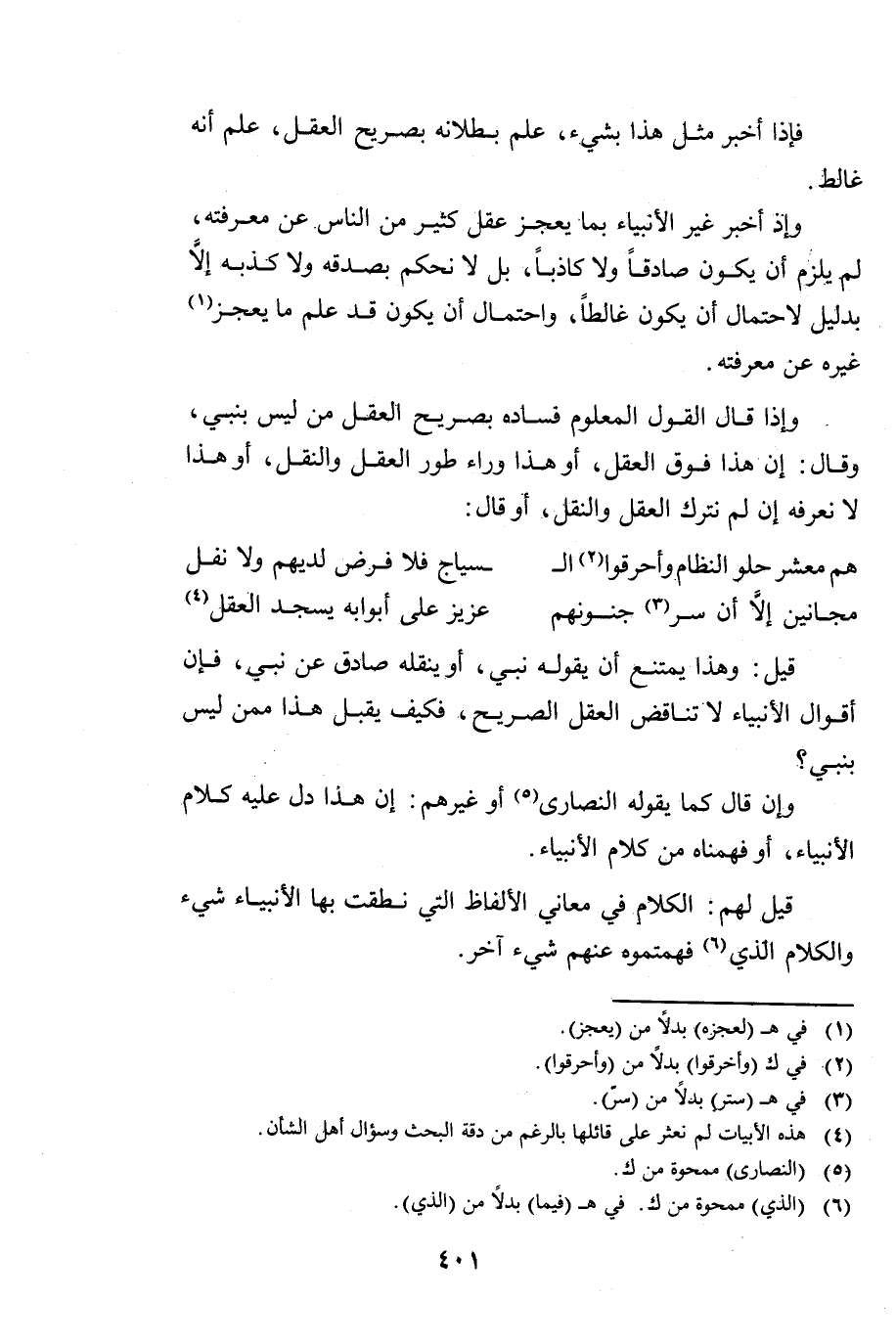 وَإِذَا قَالَ الْقَوْلَ الْمَعْلُومَ فَسَادُهُ بِصَرِيحِ الْعَقْلِ مَنْ لَيْسَ بِنَبِيٍّ، وَقَالَ: إِنَّ هَذَا فَوْقَ الْعَقْلِ، أَوْ هَذَا وَرَاءَ طَوْرِ الْعَقْلِ وَالنَّقْلِ، أَوْ هَذَا لَا نَعْرِفُهُ إِنْ لَمْ نَتْرُكِ الْعَقْلَ وَالنَّقْلَ، أَوْ قَالَ: