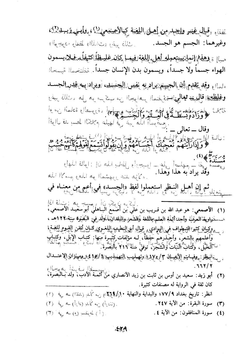 وَقَدْ تَقَدَّمَ أَنَّ الْجِسْمَ يُرَادُ بِهِ نَفْسُ الْجَسَدِ، وَيُرَادُ بِهِ قَدْرُ الْجَسَدِ وَغِلَظُهُ، قَالَ تَعَالَى: {وَزَادَهُ بَسْطَةً فِي الْعِلْمِ وَالْجِسْمِ} [البقرة: 247] وَقَالَ تَعَالَى: {وَإِذَا رَأَيْتَهُمْ تُعْجِبُكَ أَجْسَامُهُمْ وَإِنْ يَقُولُوا تَسْمَعْ لِقَوْلِهِمْ كَأَنَّهُمْ خُشُبٌ مُسَنَّدَةٌ} [المنافقون: 4]