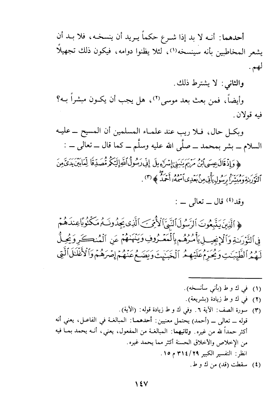 وَبِكُلِّ حَالٍ، فَلَا رَيْبَ عِنْدَ عُلَمَاءِ الْمُسْلِمِينَ أَنَّ الْمَسِيحَ - عَلَيْهِ السَّلَامُ - بَشَّرَ بِمُحَمَّدٍ صَلَّى اللَّهُ عَلَيْهِ وَسَلَّمَ - كَمَا قَالَ - تَعَالَى -: