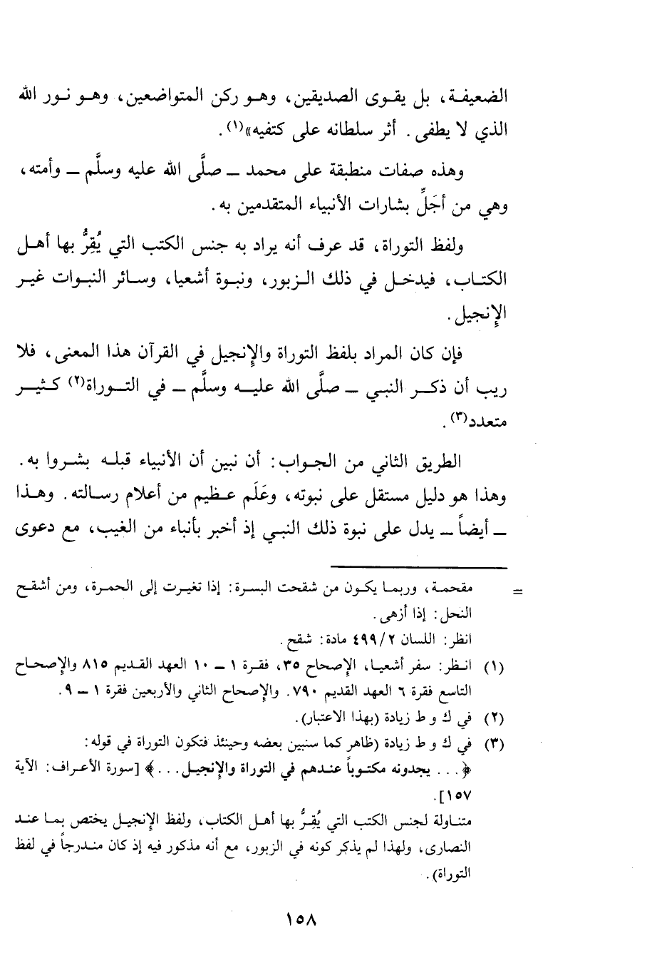فَإِنْ كَانَ الْمُرَادُ بِلَفْظِ التَّوْرَاةِ وَالْإِنْجِيلِ فِي الْقُرْآنِ هَذَا الْمَعْنَى؛ فَلَا رَيْبَ أَنَّ ذِكْرَ النَّبِيِّ فِي التَّوْرَاةِ كَثِيرٌ مُتَعَدِّدٌ.