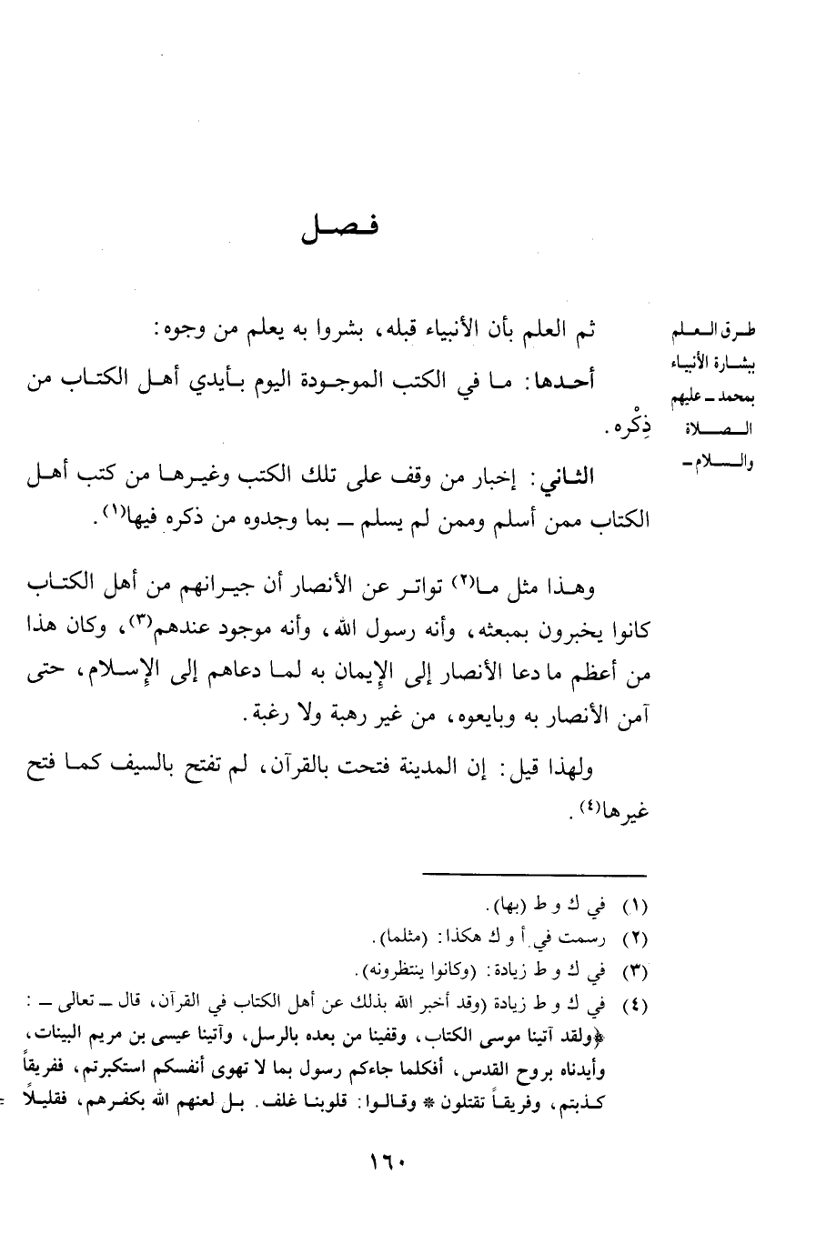 أَحَدُهَا: مَا فِي الْكُتُبِ الْمَوْجُودَةِ الْيَوْمَ بِأَيْدِي أَهْلِ الْكِتَابِ مِنْ ذِكْرِهِ.