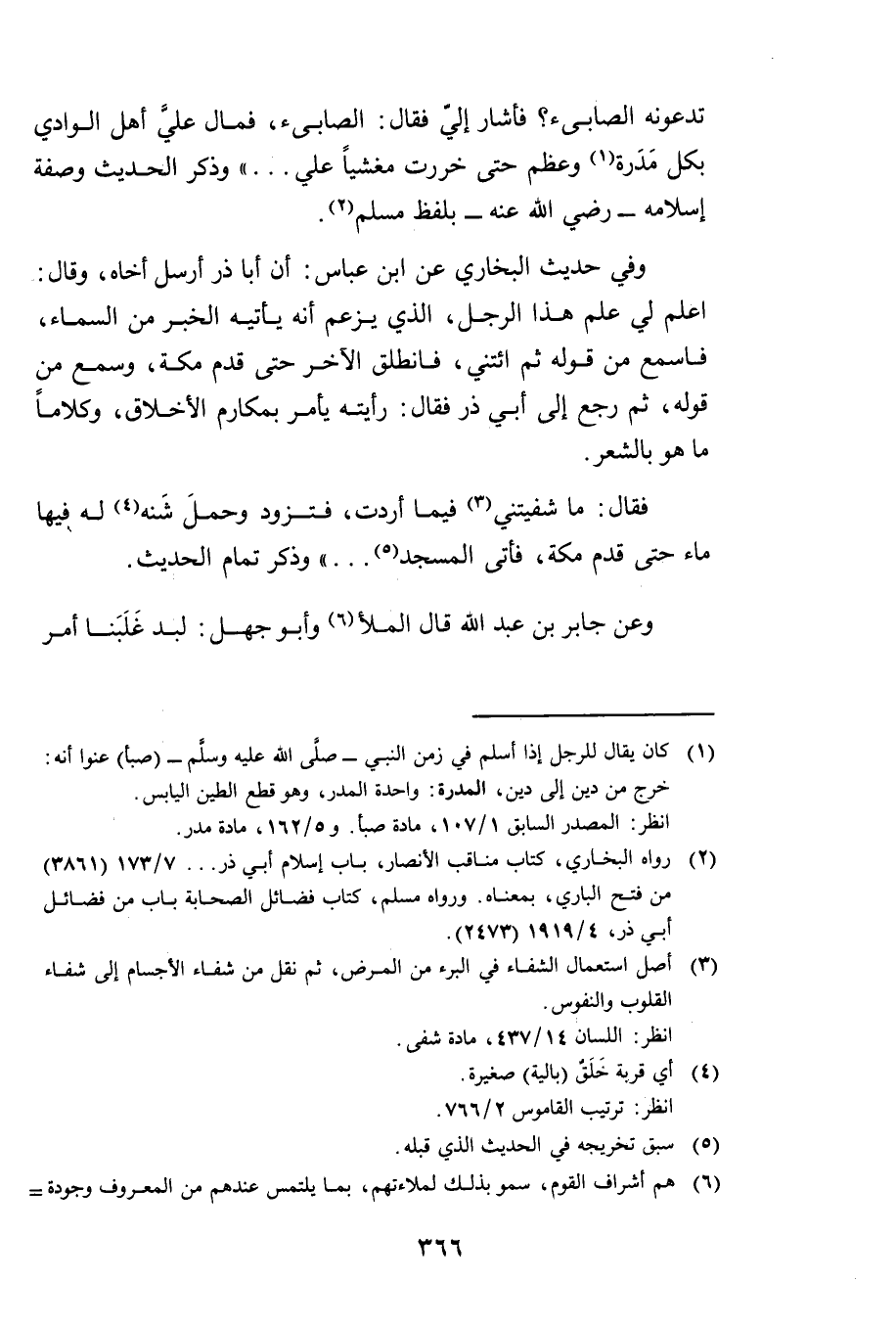 تَدْعُونَهُ الصَّابِئَ؟ فَأَشَارَ إِلَيَّ فَقَالَ: الصَّابِئَ، فَمَالَ عَلَيَّ أَهْلُ الْوَادِي بِكُلِّ مَدَرَةٍ وَعَظْمٍ حَتَّى خَرَرْتُ مَغْشِيًّا عَلَيَّ. . . "، وَذَكَرَ الْحَدِيثَ وَصِفَةَ إِسْلَامِهِ رَضِيَ اللَّهُ عَنْهُ بِلَفْظِ مُسْلِمٍ.