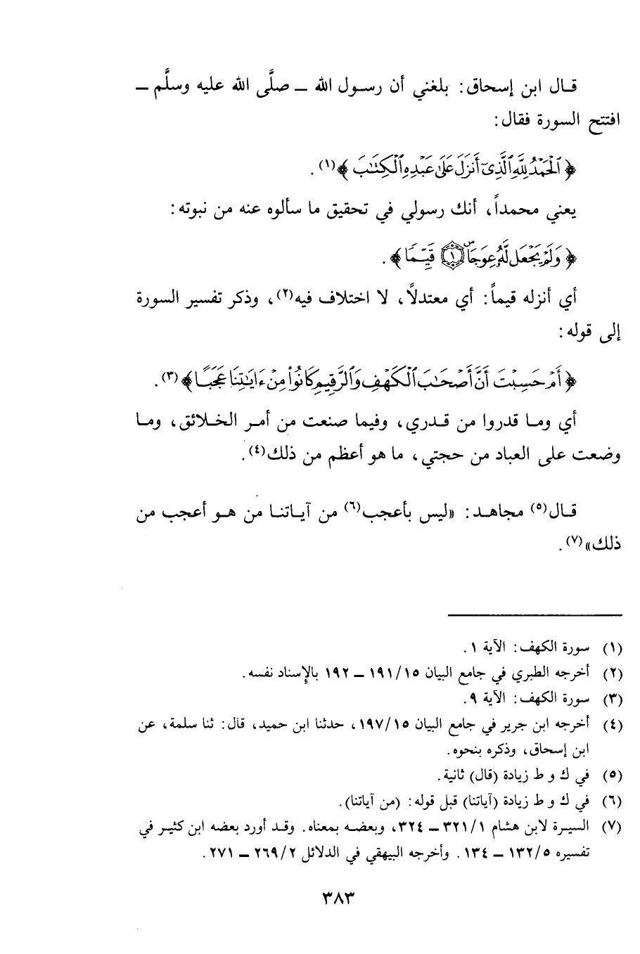 قَالَ ابْنُ إِسْحَاقَ: بَلَغَنِي أَنَّ رَسُولَ اللَّهِ صَلَّى اللَّهُ عَلَيْهِ وَسَلَّمَ افْتَتَحَ السُّورَةَ فَقَالَ: