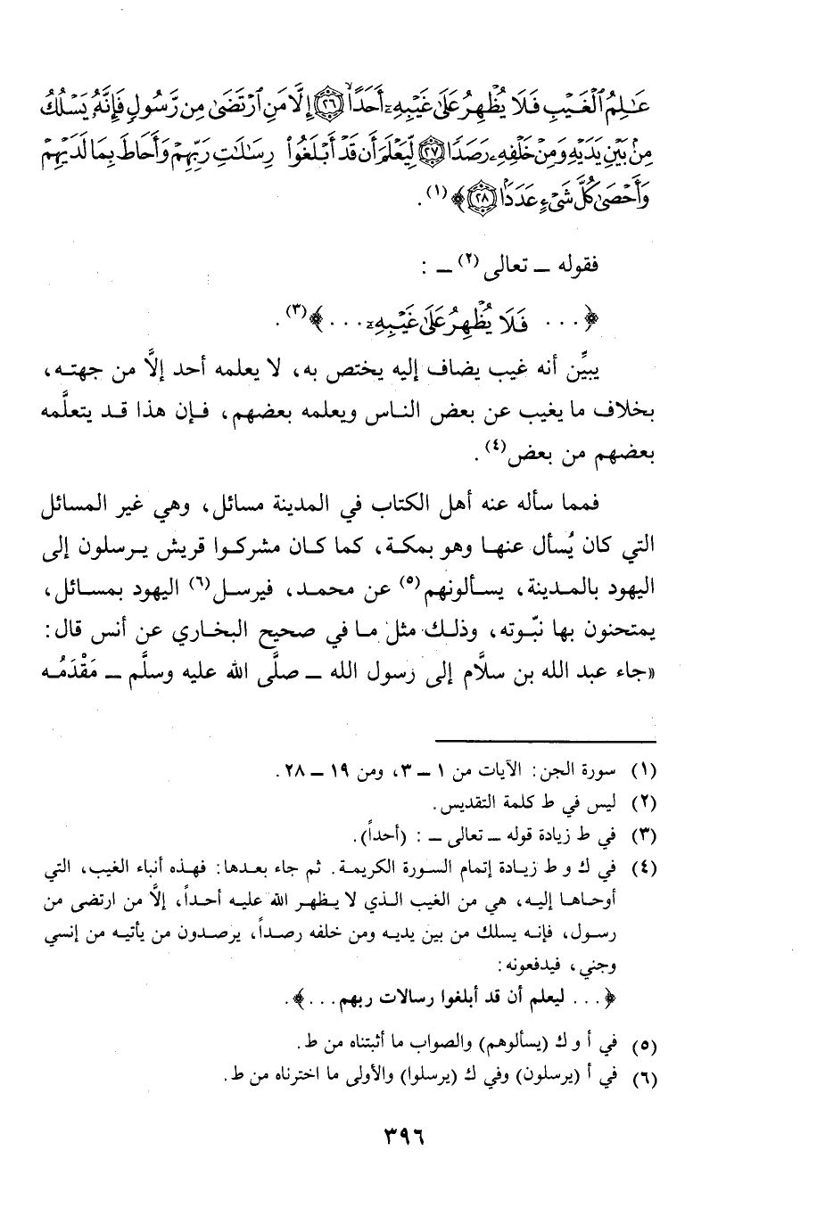 يُبَيِّنُ أَنَّهُ غَيْبٌ يُضَافُ إِلَيْهِ يَخْتَصُّ بِهِ، لَا يَعْلَمُهُ أَحَدٌ إِلَّا مِنْ جِهَتِهِ، بِخِلَافِ مَا يَغِيبُ عَنْ بَعْضِ النَّاسِ وَيَعْلَمُهُ بَعْضُهُمْ، فَإِنَّ هَذَا قَدْ يَتَعَلَّمُهُ بَعْضُهُمْ مِنْ بَعْضٍ.