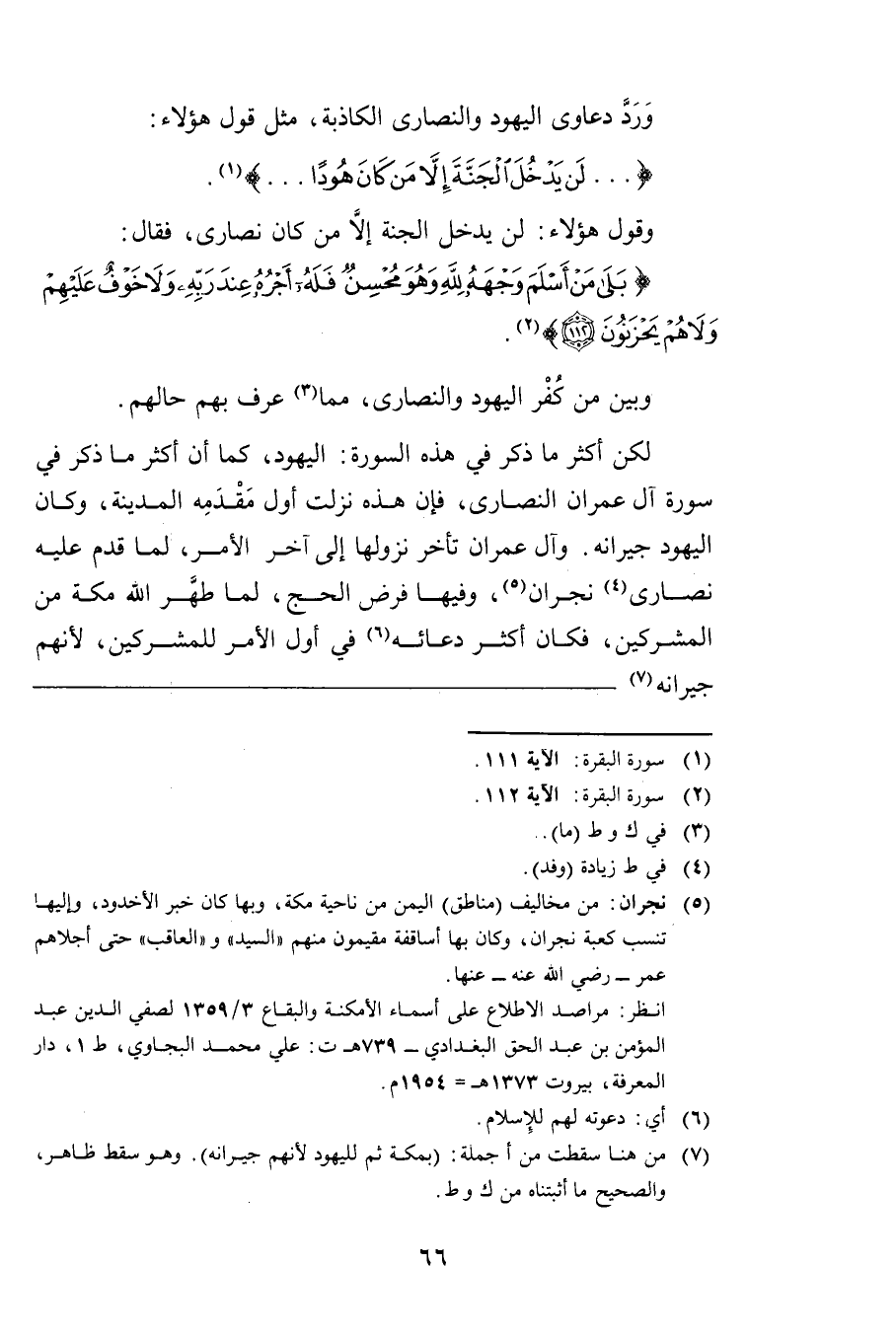 لَكِنَّ أَكْثَرَ مَا ذُكِرَ فِي هَذِهِ السُّورَةِ: الْيَهُودُ، كَمَا أَنَّ أَكْثَرَ مَا ذُكِرَ فِي سُورَةِ آلِ عِمْرَانَ النَّصَارَى، فَإِنَّ هَذِهِ نَزَلَتْ أَوَّلَ مَقْدَمِهِ الْمَدِينَةَ، وَكَانَ الْيَهُودُ جِيرَانَهُ. وَآلُ عِمْرَانَ تَأَخَّرَ نُزُولُهَا إِلَى آخِرِ الْأَمْرِ، لَمَّا قَدِمَ عَلَيْهِ نَصَارَى نَجْرَانَ، وَفِيهَا فُرِضَ الْحَجُّ، لَمَّا طَهَّرَ اللَّهُ مَكَّةَ مِنَ الْمُشْرِكِينَ، فَكَانَ أَكْثَرُ دُعَائِهِ فِي أَوَّلِ الْأَمْرِ لِلْمُشْرِكِينَ؛ لِأَنَّهُمْ جِيرَانُهُ