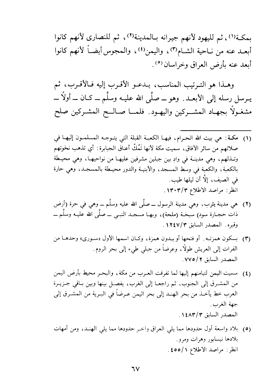 وَهَذَا هُوَ التَّرْتِيبُ الْمُنَاسِبُ، يَدْعُو الْأَقْرَبَ إِلَيْهِ فَالْأَقْرَبَ، ثُمَّ يُرْسِلُ رُسُلَهُ إِلَى الْأَبْعَدِ. وَهُوَ - صَلَّى اللَّهُ عَلَيْهِ وَسَلَّمَ - كَانَ - أَوَّلًا - مَشْغُولًا بِجِهَادِ الْمُشْرِكِينَ وَالْيَهُودِ. فَلَمَّا صَالَحَ الْمُشْرِكِينَ صُلْحَ