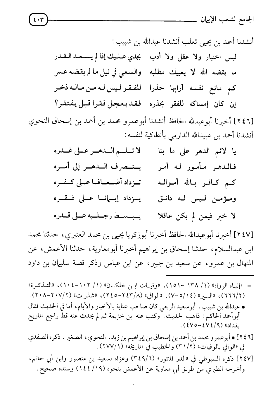 246 - أَخْبَرَنَا أَبُو عَبْدِ اللهِ الْحَافِظُ، أَنْشَدَنَا أَبُو عَمْرٍو مُحَمَّدُ بْنُ أَحْمَدَ بْنِ إِسْحَاقَ النَّحْوِيُّ، أَنْشَدَنَا أَحْمَدُ بْنُ عُبَيْدِ اللهِ الدَّارِمِيُّ بِأَنْطَاكِيَةَ لِنَفْسِهِ:"
