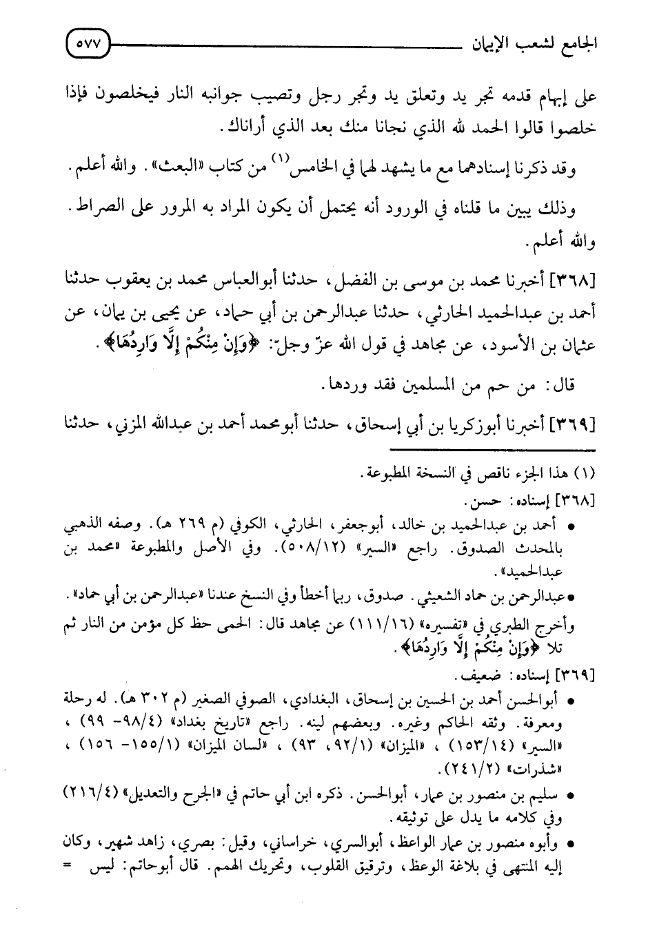 368 - أَخْبَرَنَا مُحَمَّدُ بْنُ مُوسَى بْنِ الْفَضْلِ، حدثنا أَبُو الْعَبَّاسِ مُحَمَّدُ بْنُ يَعْقُوبَ، حدثنا أَحْمَدُ بْنُ عَبْدِ الْحَمِيدِ الْحَارِثِيُّ، حدثنا عَبْدُ الرَّحْمَنِ بْنُ أَبِي حَمَّادٍ، عَنْ يَحْيَى بْنِ يَمَانٍ، عَنْ عُثْمَانَ بْنِ الْأَسْوَدِ، عَنْ مُجَاهِدٍ فِي قَوْلِ اللهِ عَزَّ وَجَلَّ: {§وَإِنْ مِنْكُمْ إِلَّا وَارِدُهَا} [مريم: 71] قَالَ: " مَنْ حُمَّ مِنَ الْمُسْلِمِينَ فَقَدْ وَرَدَهَا "