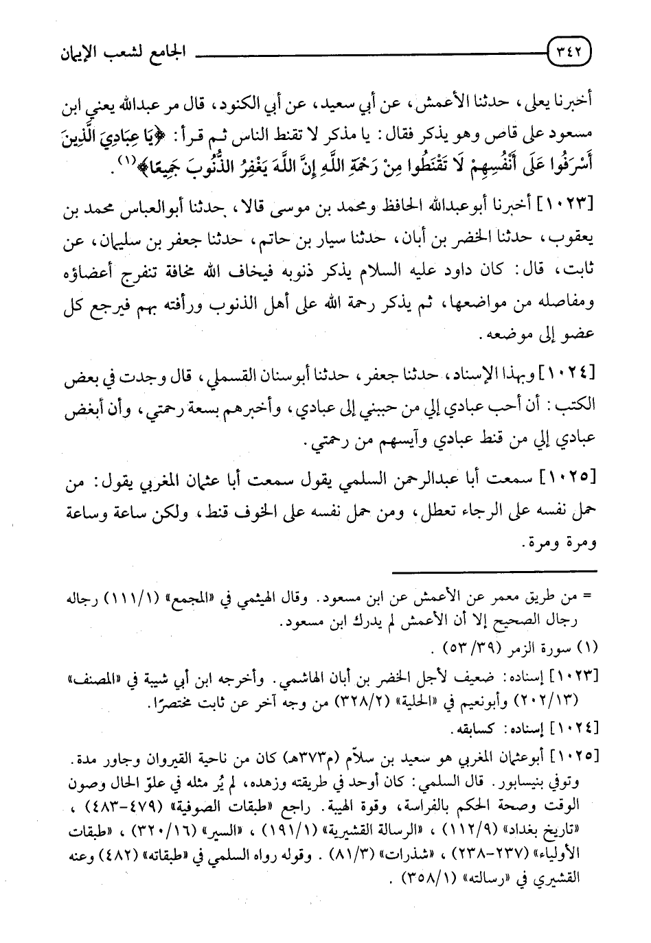 1025 - سَمِعْتُ أَبَا عَبْدِ الرَّحْمَنِ السَّلَمِيَّ، يَقُولُ: سَمِعْتُ أَبَا عُثْمَانَ الْمَغْرِبِيَّ، يَقُولُ: " §مَنْ حَمَلَ نَفْسَهُ عَلَى الرَّجَاءِ تَعَطَّلَ، وَمَنْ حَمَلَ نَفْسَهَ عَلَى الْخَوْفِ قَنَطَ، وَلَكِنْ سَاعَةً وسَاعَةً وَمَرَّةً وَمَرَّةً "
