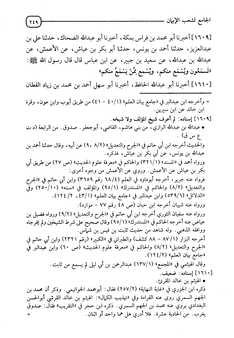 1609 - أَخْبَرَنَا أَبُو مُحَمَّدِ بْنُ فِرَاسٍ بِمَكَّةَ، أخبرنا أَبُو عَبْدِ اللهِ الضَّحَّاكِ، حدثنا عَلِيُّ بْنُ عَبْدِ الْعَزِيزِ، حدثنا أَحْمَدُ بْنُ يُونُسَ، حدثنا أَبُو بَكْرِ بْنُ عَيَّاشٍ، عَنِ الْأَعْمَشِ، عَنْ عَبْدِ اللهِ بْنِ عَبْدِ اللهِ، عَنْ سَعِيدِ بْنِ جُبَيْرٍ، عَنِ ابْنِ عَبَّاسٍ، قَالَ: قَالَ رَسُولُ اللهِ صَلَّى اللَّهُ عَلَيْهِ وَسَلَّمَ: " §تَسْمَعُونَ وَيُسْمَعُ مِنْكُمْ، وَيُسْمَعُ مِمَّنْ يَسْمَعُ مِنْكُمْ "