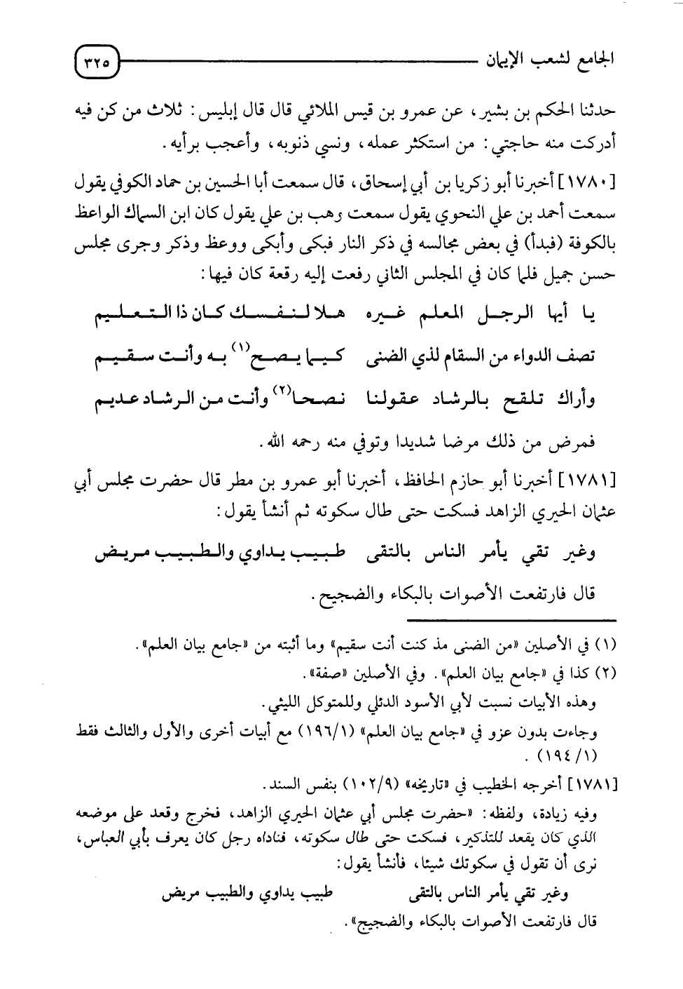 يَا أَيُّهَا الرَّجُلُ الْمُعَلِّمُ غَيْرَهُ ... هَلَّا لِنَفْسِكَ كَانَ ذَا التَّعْلِيمُ