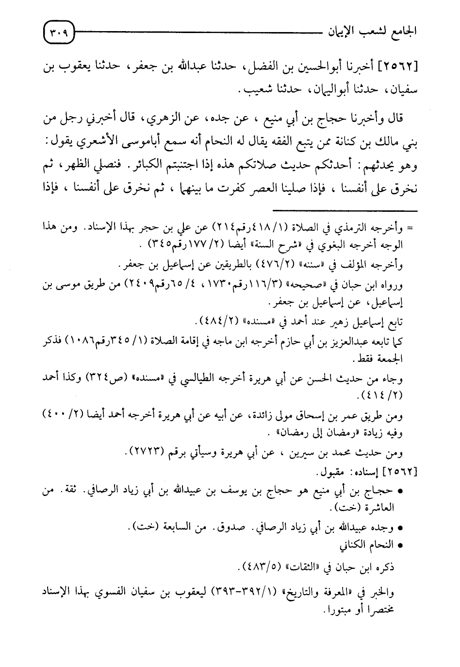 2562 - أَخْبَرَنَا أَبُو الْحُسَيْنِ بْنُ الْفَضْلِ، حَدَّثَنَا عَبْدُ اللهِ بْنُ جَعْفَرٍ، حَدَّثَنَا يَعْقُوبُ بْنُ سُفْيَانَ، حَدَّثَنَا أَبُو الْيَمَانِ، حَدَّثَنَا شُعَيْبٌ، قَالَ: وَأَخْبَرَنَا حَجَّاجُ بْنُ أَبِي مَنِيعٍ، عَنْ جَدِّهِ، عَنِ الزُّهْرِيِّ، قَالَ: أَخْبَرَنِي رَجُلٌ، مِنْ بَنِي مَالِكِ بْنِ كِنَانَةَ مِمَّنْ يَتْبَعُ الْفِقْهَ يُقَالُ لَهُ الْنَّحَّامُ: أَنَّهُ سَمِعَ أَبَا مُوسَى الْأَشْعَرِيَّ، يَقُولُ وَهُوَ يُحَدِّثُهُمْ: " أُحَدِّثُكُمْ حَدِيثَ §صَلَاتِكُمْ هَذِهِ إِذَا اجْتَنَبْتُمُ الْكَبَائِرَ، فَنُصَلِّي الظُّهْرَ، ثُمَّ نُخَرِّقُ عَلَى أَنْفُسِنَا، فَإِذَا صَلَّيْنَا الْعَصْرَ، كَفَّرَتْ مَا بَيْنَهُمَا، ثُمَّ نُخَرِّقُ عَلَى أَنْفُسِنَا، فَإِذَا صَلَّيْنَا -[310]- الْمَغْرِبَ، كَفَّرَتْ مَا بَيْنَهُمَا، ثُمَّ نُخَرِّقُ عَلَى أَنْفُسِنَا، فَإِذَا صَلَّيْنَا الْعِشَاءَ - يُرِيدُ الْعَتَمَةَ - كَفَّرَتْ مَا بَيْنَهُمَا، ثُمَّ نُخَرِّقُ عَلَى أَنْفُسِنَا فَإِذَا صَلَّيْنَا الْفَجْرَ كَفَّرَتْ مَا بَيْنَهُمَا إِذَا اجْتَنَبْتُمُ الْكَبَائِرَ " هَكَذَا جَاءَ مَوْقُوفًا عَلَى أَبِي مُوسَى