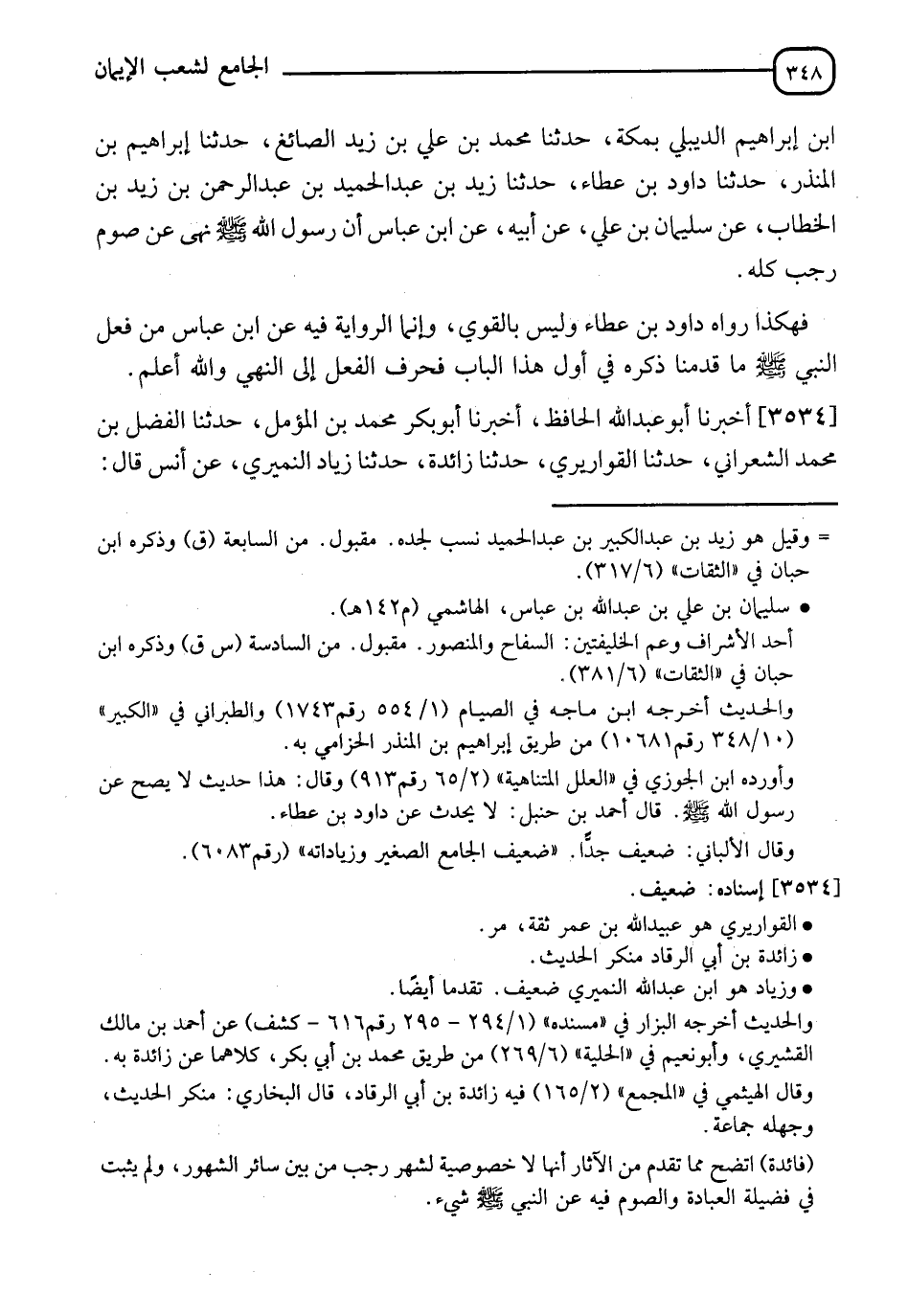 3534 - أَخْبَرَنَا أَبُو عَبْدِ اللهِ الْحَافِظُ، أَخْبَرَنَا أَبُو بَكْرٍ مُحَمَّدُ بْنُ الْمُؤَمَّلِ، حَدَّثَنَا الْفَضْلُ بْنُ مُحَمَّدٍ الشَّعْرَانِيُّ، حَدَّثَنَا الْقَوَارِيرِيُّ، حَدَّثَنَا زَائِدَةُ، حَدَّثَنَا زِيَادٌ النُّمَيْرِيُّ، عَنْ أَنَسٍ، قَالَ: -[349]- كَانَ النَّبِيُّ صَلَّى اللَّهُ عَلَيْهِ وَسَلَّمَ §إِذَا دَخَلَ رَجَبٌ، قَالَ: " اللهُمَّ بَارِكْ لَنَا فِي رَجَبٍ، وَشَعْبَانَ، وَبَلِّغْنَا رَمَضَانَ "