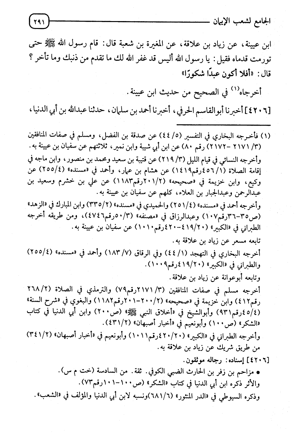 4206 - أَخْبَرَنَا أَبُو الْقَاسِمِ الْحَرفيِّ، أَخْبَرَنَا أَحْمَدُ بْنُ سَلْمَانَ، حَدَّثَنَا عَبْدُ اللهِ بْنُ أَبِي الدُّنْيَا، -[292]- حَدَّثَنَا عَلِيُّ بْنُ الْجَعْدِ، أَخْبَرَنِي مُزَاحِمُ بْنُ زُفَرَ، عَنْ مِسْعَرٍ، قَالَ: " §لَمَّا قِيلَ لَهُمْ {اعْمَلُوا آلَ دَاوُدَ شُكْرًا} لَمْ يَأْتِ عَلَى الْقَوْمِ سَاعَةٌ إِلَّا وَمِنْهُمْ مُصَلٍّى "