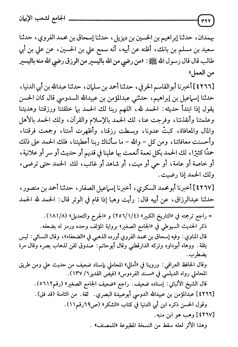 4266 - أَخْبَرَنَا أَبُو الْقَاسِمِ الحرفي، حدثنا أَحْمَدُ بْنُ سَلْمَانَ، حَدَّثَنَا عَبْدُ اللهِ بْنُ أَبِي الدُّنْيَا، حَدَّثَنَا إِسْمَاعِيلُ بْنُ إِبْرَاهِيمَ، حَدَّثَنِي عَبْدُ الْمُؤْمِنِ بْنُ عُبَيْدِ اللهِ السَّدُوسِيُّ، قَالَ: كَانَ الْحَسَنُ يَقُولُ: " §إِذَا ابْتَدَأَ حَدِيثَهُ: الْحَمْدُ لِلَّهِ اللهُمَّ رَبَّنَا لَكَ الْحَمْدُ بِمَا خَلَقْتَنَا وَرَزَقْتَنَا وَهَدَيْتَنَا وَعَلَّمْتَنَا وَأَنْقَذْتَنَا وَفَرّجَتْ عَنَّا لَكَ الْحَمْدُ بِالْإِسْلَامِ وَالْقُرْآنِ، وَلَكَ الْحَمْدُ بِالْأَهْلِ وَالْمَالِ وَالْمُعَافَاةِ، كَبَتَّ عَدُوَّنَا، وَبَسَطْتَ رِزْقَنَا، وَأَظْهَرْتَ أَمتَنَا، وَجَمَعْتَ فُرْقَتَنَا، وَأَحْسَنْتَ مُعَافَاتِنَا، وَمِنْ كُلِّ وَاللهِ مَا سَأَلْنَاكَ رَبَّنَا أَعْطَيْتَنَا، فَلَكَ الْحَمْدُ عَلَى ذَلِكَ حَمْدًا كَثِيرًا، لَكَ الْحَمْدُ بِكُلِّ نِعْمَةٍ أَنْعَمْتَ بِهَا عَلَيْنَا فِي قَدِيمٍ أَوْ حَدِيثٍ أَوْ سِرٍّ أَوْ عَلَانِيَةٍ أَوْ خَاصَّةً أَوْ عَامَّةً أَوْ حَيٍّ أَوْ مَيِّتٍ أَوْ شَاهِدٍ أَوْ غَائِبٍ، لَكَ الْحَمْدُ حَتَّى تَرْضَى، وَلَكَ الْحَمْدُ إِذَا رَضِيتَ "