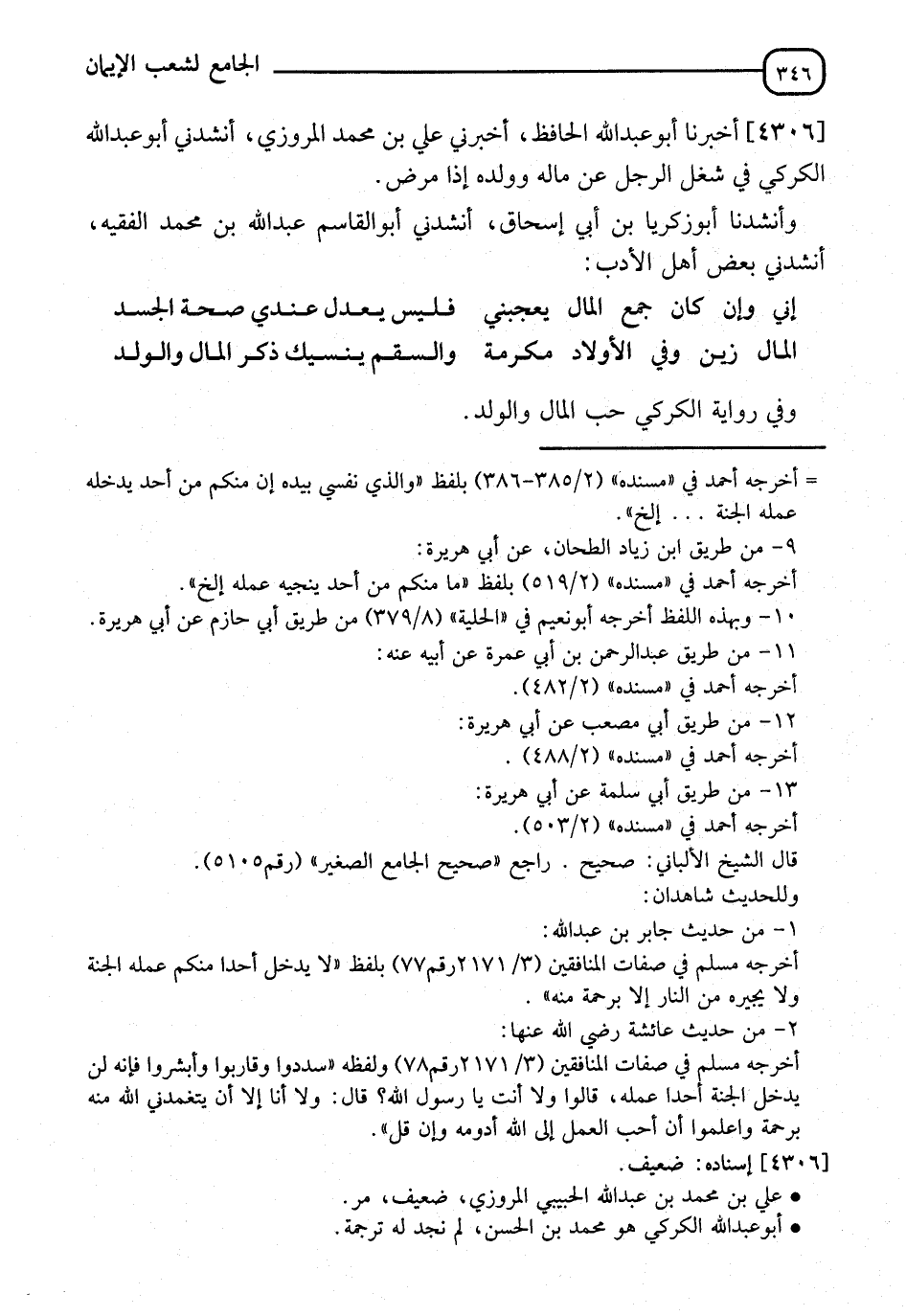 4306 - أَخْبَرَنَا أَبُو عَبْدِ اللهِ الْحَافِظُ، أَخْبَرَنِي عَلِيُّ بْنُ مُحَمَّدٍ الْمَرْوَزِيُّ، أَنْشِدْنِي أَبُو عَبْدِ اللهِ الْكَرْكيُّ: §" فِي شُغْلِ الرَّجُلِ عَنْ مَالِهِ وَوَلَدِهِ إِذَا مَرِضَ "