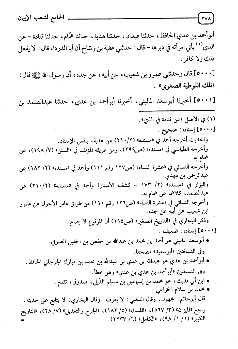 5000 - وَحَدَّثَنِي عَمْرُو بْنُ شُعَيْبٍ، عَنْ أَبِيهِ، عَنْ جَدِّهِ، أَنَّ رَسُولَ اللهِ صَلَّى اللَّهُ عَلَيْهِ وَسَلَّمَ قَالَ: §" تِلْكَ اللُّوطِيَّةُ الصُّغْرَى "