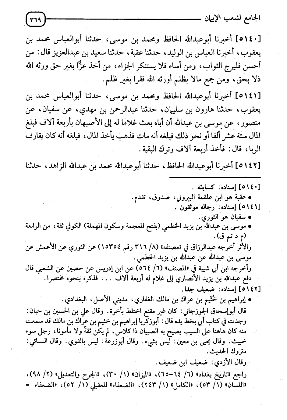 5141 - أَخْبَرَنَا أَبُو عَبْدِ اللهِ الْحَافِظُ، وَمُحَمَّدُ بْنُ مُوسَى، ثنا أَبُو الْعَبَّاسِ مُحَمَّدُ بْنُ يَعْقُوبَ، ثنا هَارُونُ بْنُ سُلَيْمَانَ، ثنا عَبْدُ الرَّحْمَنِ بْنُ مَهْدِيٍّ، عَنْ سُفْيَانَ، عَنْ مَنْصُورٍ، عَنْ مُوسَى بْنِ عَبْدِ اللهِ، " أَنَّ §أَبَاهُ بَعَثَ غُلَامًا لَهُ إِلَى الْأَصْبَهَانِيِّ بِأَرْبَعَةِ آلَافٍ، فَبَلَغَ الْمَالُ سِتَّةَ عَشَرَ أَلْفًا أَوْ نَحْوَ ذَلِكَ، فَبَلَغَهُ أَنَّهُ مَاتَ، فَذَهَبَ يَأْخُذُ الْمَالَ، فَبَلَغَهُ أَنَّهُ كَانَ يُقَارِفُ الرِّبَا، قَالَ: فَأَخَذَ أَرْبَعَةَ آلَافٍ وَتَرَكَ الْبَقِيَّةَ "