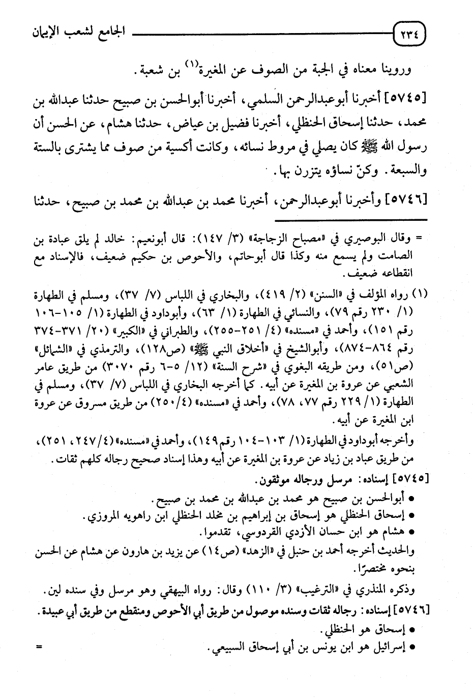 5746 - وَأَخْبَرَنَا أَبُو عَبْدِ الرَّحْمَنِ، أَنَا مُحَمَّدُ بْنُ عَبْدِ اللهِ بْنِ مُحَمَّدِ بْنِ صُبَيْحٍ، ثَنَا -[235]- عَبْدُ اللهِ بْنُ شِيرَوَيْهِ، ثَنَا إِسْحَاقُ، أَنَا الْمُصْعَبُ بْنُ الْمِقْدَامِ، ثَنَا إِسْرَائِيلُ، عَنْ أَبِي إِسْحَاقَ، عَنْ أَبِي الْأَحْوَصِ، عَنْ أَبِي عُبَيْدَةَ، عَنْ عَبْدِ اللهِ قَالَ: " كَانَ §الْأَنْبِيَاءُ يَسْتَحِبُّونَ أَنْ يَلْبَسُوا الصُّوفَ وَيَحْلِبُوا الشَّاةَ وَيَرْكَبُوا الْحِمَارَ "