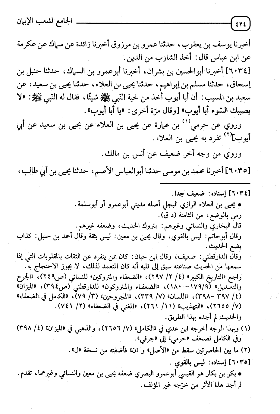 6034 - أَخْبَرَنَا أَبُو الْحُسَيْنِ بْنُ بِشْرَانَ، أَنَا أَبُو عَمْرِو بْنُ السَّمَّاكِ، ثَنَا حَنْبَلُ بْنُ إِسْحَاقَ، ثَنَا مُسْلِمُ بْنُ إِبْرَاهِيمَ، ثَنَا يَحْيَى بْنُ الْعَلَاءِ، ثَنَا يَحْيَى بْنُ سَعِيدِ بْنِ الْمُسَيِّبِ، أَنَّ أَبَا أَيُّوبَ أَخَذَ مِنْ لِحْيَةِ النَّبِيِّ صَلَّى اللَّهُ عَلَيْهِ وَسَلَّمَ شَيْئًا، فَقَالَ النَّبِيُّ صَلَّى اللَّهُ عَلَيْهِ وَسَلَّمَ: §" لَا يُصِيبُكَ السُّوءُ أَبَا أَيُّوبَ " " تَفَرَّدَ بِهِ يَحْيَى بْنُ الْعَلَاءِ وَرُوِيَ مِنْ وَجْهٍ آخَرَ ضَعِيفٍ عَنْ أَنَسِ بْنِ مَالِكٍ "