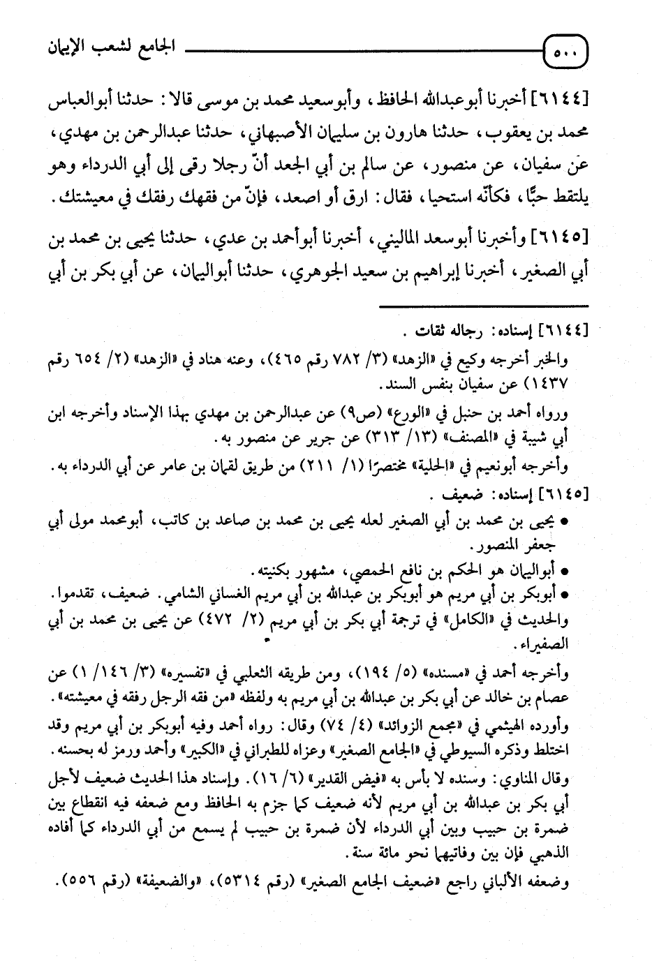 6144 - أَخْبَرَنَا أَبُو عَبْدِ اللهِ الْحَافِظُ، وَأَبُو سَعِيدٍ مُحَمَّدُ بْنُ مُوسَى، ثَنَا أَبُو الْعَبَّاسِ مُحَمَّدُ بْنُ يَعْقُوبَ، ثَنَا هَارُونُ بْنُ سُلَيْمَانَ الْأَصْبَهَانِيُّ، ثَنَا عَبْدُ الرَّحْمَنِ بْنُ مَهْدِيٍّ، عَنْ سُفْيَانَ، عَنْ مَنْصُورٍ، عَنْ سَالِمِ بْنِ أَبِي الْجَعْدِ، أَنَّ رَجُلًا رَقَى إِلَى أَبِي الدَّرْدَاءِ وَهُوَ يَلْتَقِطُ حَبًّا فَكَأَنَّهُ اسْتَحْيَى فَقَالَ: §" ارْقَ وَاصْعَدْ فَإِنَّ مِنْ فِقْهِكَ رِفْقَكَ فِي مَعِيشَتِكَ "