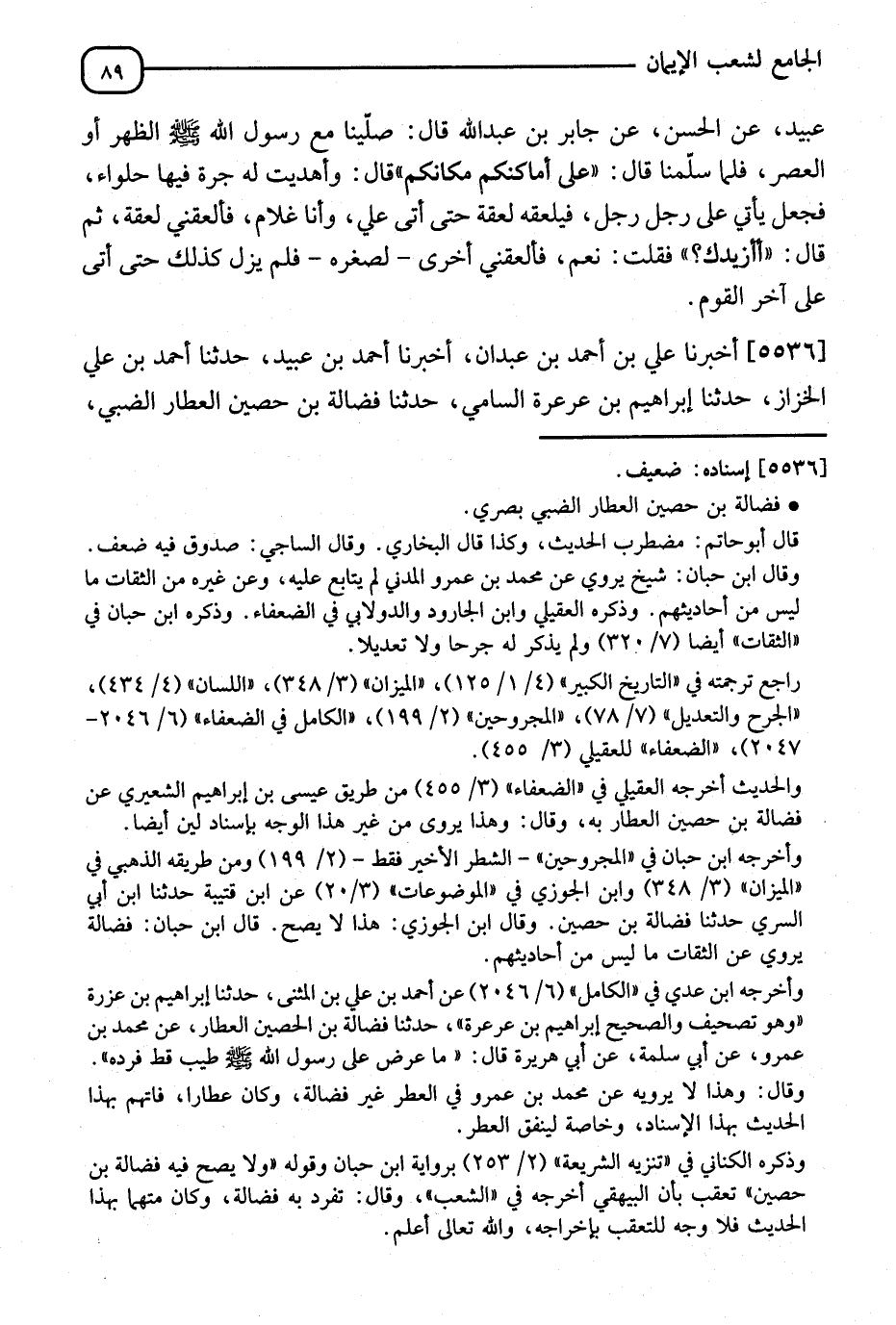 5536 - أَخْبَرَنَا عَلِيُّ بْنُ أَحْمَدَ بْنِ عَبْدَانَ، ثَنَا أَحْمَدُ بْنُ عُبَيْدٍ، أَنَا أَحْمَدُ بْنُ عَلِيٍّ الْخَزَّازُ، ثَنَا إِبْرَاهِيمُ بْنُ عَرْعَرَةَ الشَّامِيُّ، ثَنَا فَضَالَةُ بْنُ حُصَيْنٍ الْعَطَّارُ الضَّبِّيُّ، -[90]- ثَنَا مُحَمَّدُ بْنُ عَمْرٍو، عَنْ أَبِي سَلَمَةَ، عَنْ أَبِي هُرَيْرَةَ قَالَ: قَالَ رَسُولُ اللهِ صَلَّى اللَّهُ عَلَيْهِ وَسَلَّمَ: " §إِذَا أُتِيَ أَحَدُكُمُ بِالطِّيبِ: فَلْيَمَسَّ مِنْهُ، وَإِذَا أُتِيَ بِالْحَلْوَاءِ: فَلْيُصِبْ مِنْهُ " " تَفَرَّدَ بِهِ فَضَالَةُ بْنُ حُصَيْنٍ الْعَطَّارُ، وَكَانَ مُتَّهَمًا بِهَذَا الْحَدِيثِ وَاللهُ أَعْلَمُ "