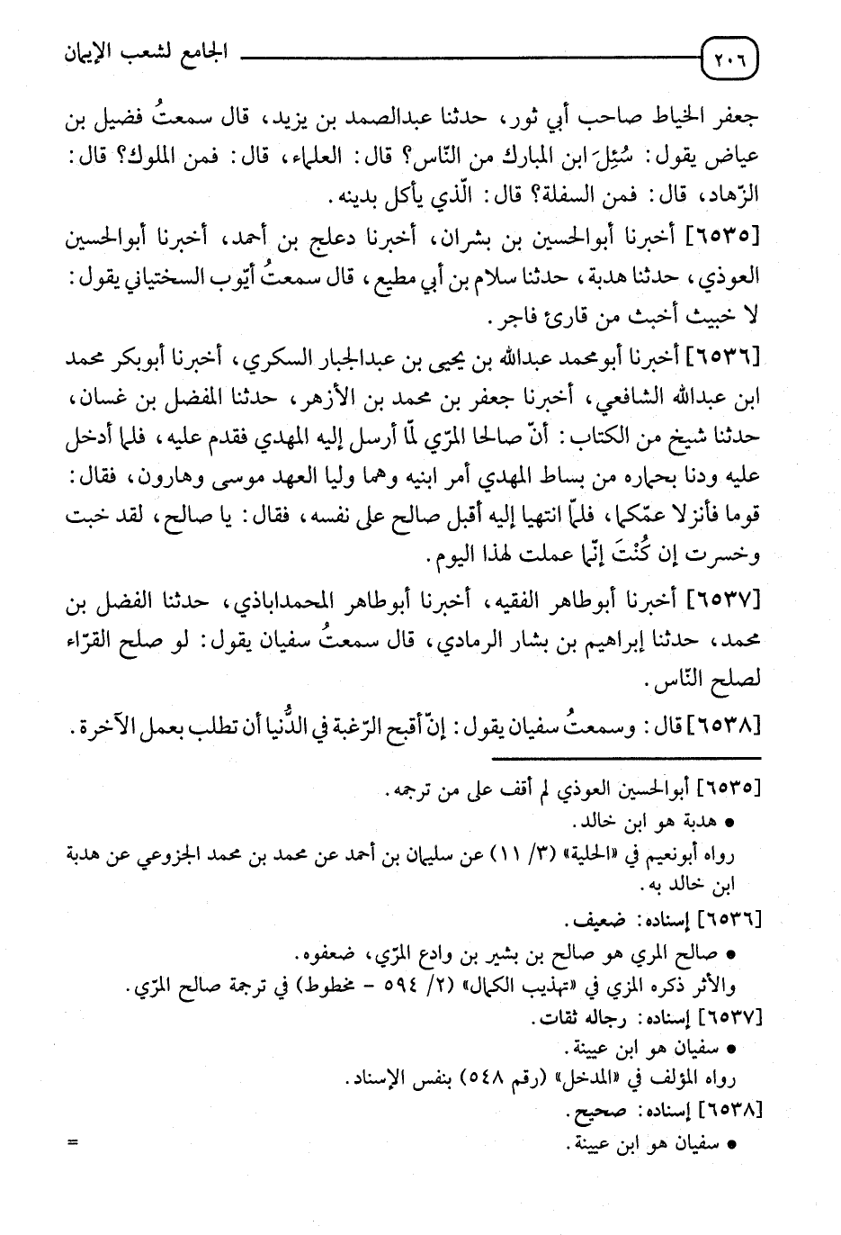 6535 - أَخْبَرَنَا أَبُو الْحُسَيْنِ بْنُ بِشْرَانَ، أَنَا دَعْلَجُ بْنُ أَحْمَدَ، أَنَا أَبُو الْحُسَيْنِ الْعَلَوِيُّ، نا هُدْبَةُ، نا سَلَّامُ بْنُ أَبِي مُطِيعٍ قَالَ: سَمِعْتُ أَيُّوبَ السَّخْتِيَانِيَّ يَقُولُ: §" لَا خُبْثَ أَخْبَثُ مِنْ قَارِئٍ فَاجِرٍ "