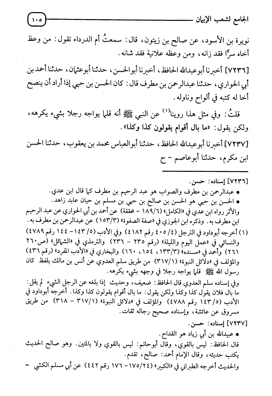 7236 - أَخْبَرَنَا أَبُو عَبْدِ اللهِ الْحَافِظُ، أنا الْحَسَنُ، نا أَبُو عُثْمَانَ، نا أَحْمَدُ بْنُ أَبِي الْحَوَارِيِّ، نا عَبْدُ الرَّحْمَنِ بْنُ مُطَرِّفٍ، قَالَ: " كَانَ الْحَسَنُ بْنُ حَيٍّ §إِذَا أَرَادَ أَنْ يَنْصَحَ أَخًا لَهُ كَتَبَهُ فِي أَلْوَاحٍ وَنَاوَلَهُ "