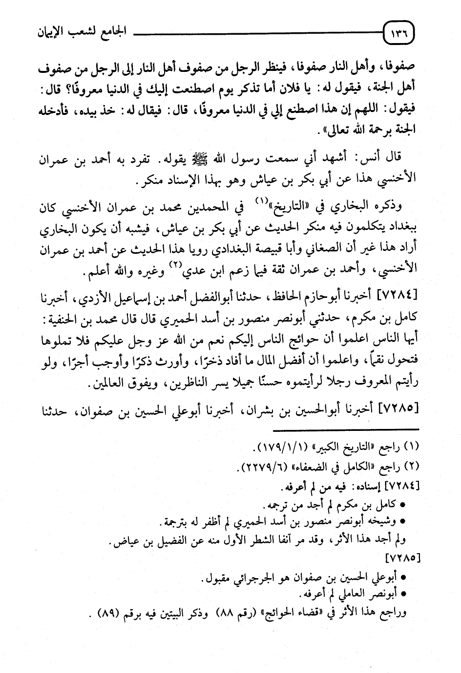 7285 - أَخْبَرَنَا أَبُو الْحُسَيْنِ بْنُ بِشْرَانَ، أنا أَبُو عَلِيٍّ الْحُسَيْنُ بْنُ صَفْوَانَ، نا -[137]- أَبُو بَكْرٍ عَبْدُ اللهِ بْنُ مُحَمَّدٍ الْقُرَشِيُّ، حَدَّثَنِي الْحُسَيْنُ بْنُ عَبْدِ الرَّحْمَنِ، حَدَّثَنِي أَبُو نَصْرٍ الْعَامِلِيُّ قَالَ: كَانَ يُقَالُ: §" زَكَاةُ النِّعَمِ اتِّخَاذُ الصَّنَائِعِ وَالْمَعْرُوفُ "