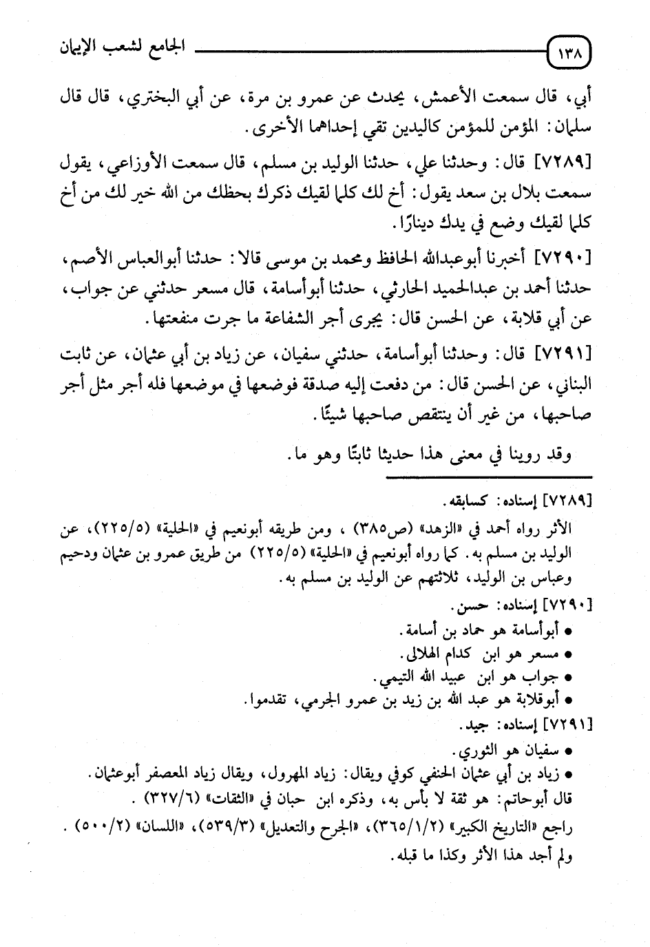 7289 - قَالَ: وَنا الْوَلِيدُ بْنُ مُسْلِمٍ، قَالَ: سَمِعْتُ الْأَوْزَاعِيَّ، يَقُولُ: سَمِعْتُ بِلَالَ بْنَ سَعْدٍ، يَقُولُ: §" أَخٌ لَكَ كُلَّمَا لَقِيَكَ ذَكَّرَكَ بِحَظِّكَ مِنَ اللهِ عَزَّ وَجَلَّ خَيْرٌ لَكَ مِنْ أَخٍ كُلَّمَا لَقِيَكَ وَضَعَ فِي يَدِكَ دِينَارًا "
