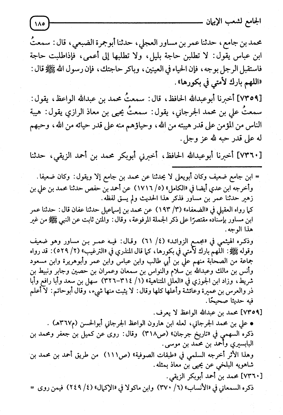 7359 - أَخْبَرَنَا أَبُو عَبْدِ اللهِ الْحَافِظُ، سَمِعْتُ مُحَمَّدَ بْنَ عَبْدِ اللهِ الْوَاعِظَ، سَمِعْتُ عَلِيَّ بْنَ مُحَمَّدٍ الْجُرْجَانِيَّ، يَقُولُ: سَمِعْتُ يَحْيَى بْنَ مُعَاذٍ الرَّازِيَّ يَقُولُ: " §هَيْبَةُ النَّاسِ مِنَ الْمُؤْمِنِ عَلَى قَدْرِ هَيْبَتِهِ مِنَ اللهِ، وَحَيَاؤُهُمْ مِنْهُ عَلَى قَدْرِ حَيَائِهِ مِنَ اللهِ، وَحُبُّهُمْ لَهُ عَلَى قَدْرِ حُبِّهِ لِلَّهِ عَزَّ وَجَلَّ "