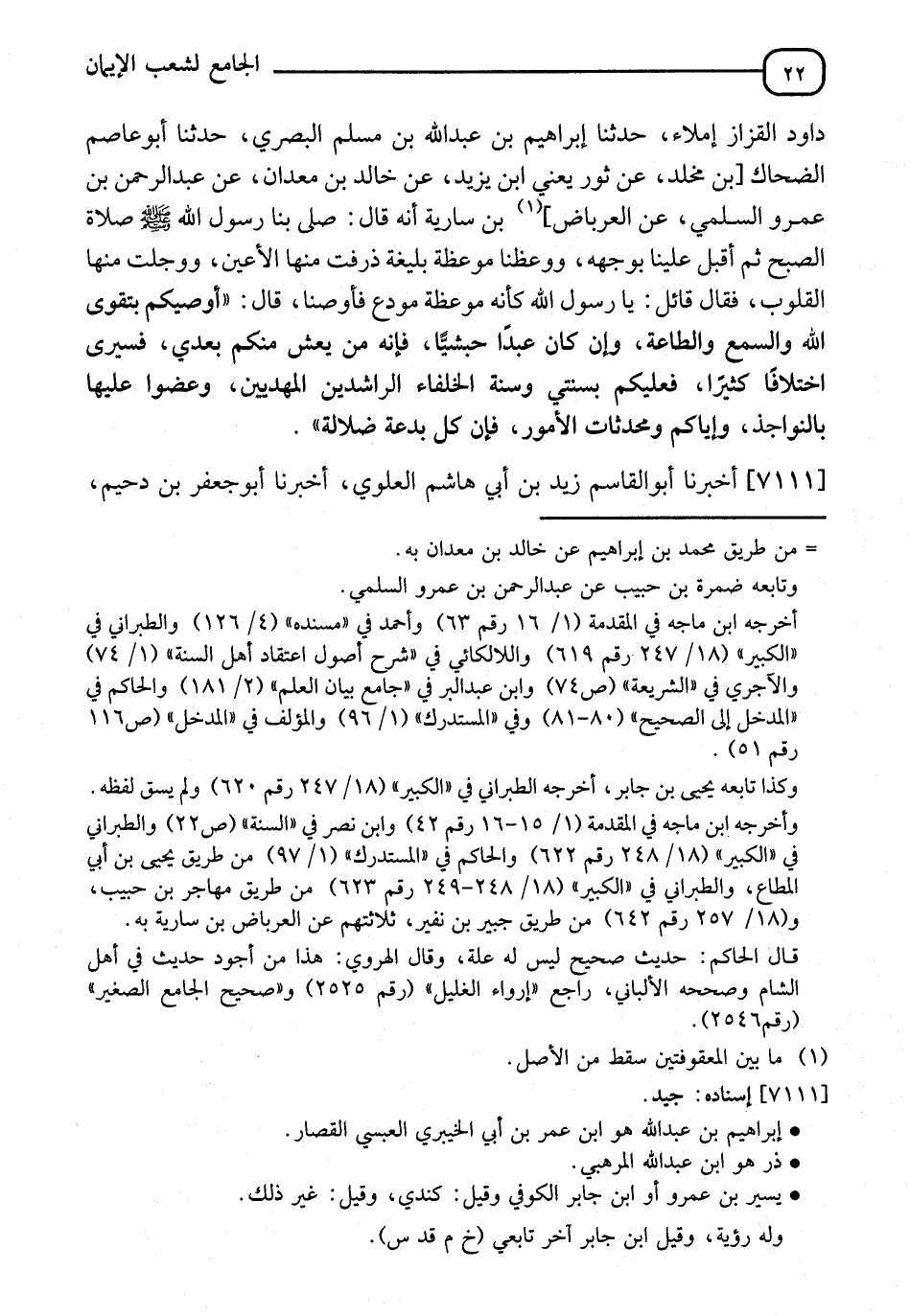 7111 - أَخْبَرَنَا أَبُو الْقَاسِمِ زَيْدُ بْنُ أَبِي هَاشِمٍ الْعَلَوِيُّ، أنا أَبُو جَعْفَرِ بْنُ دُحَيْمٍ، -[23]- نا إِبْرَاهِيمُ بْنُ عَبْدِ اللهِ، أنا وَكِيعٌ، عَنِ الْأَعْمَشِ، عَنِ الْمُسَيِّبِ بْنِ رَافِعٍ، عَنْ ذَرٍّ، عَنْ يَسِيرِ بْنِ عَمْرٍو، قَالَ: خَرَجْنَا مَعَ ابْنِ مَسْعُودٍ قُلْنَا: أَوْصِنَا قَالَ: " §عَلَيْكُمْ بِالْجَمَاعَةِ، فَإِنَّ اللهَ لَنْ يَجْمَعَ أُمَّةَ مُحَمَّدٍ صَلَّى اللَّهُ عَلَيْهِ وَسَلَّمَ عَلَى ضَلَالَةٍ حَتَّى يَسْتَرِيحَ بَرٌّ أَوْ يُسْتَرَاحُ مِنْ فَاجِرٍ "