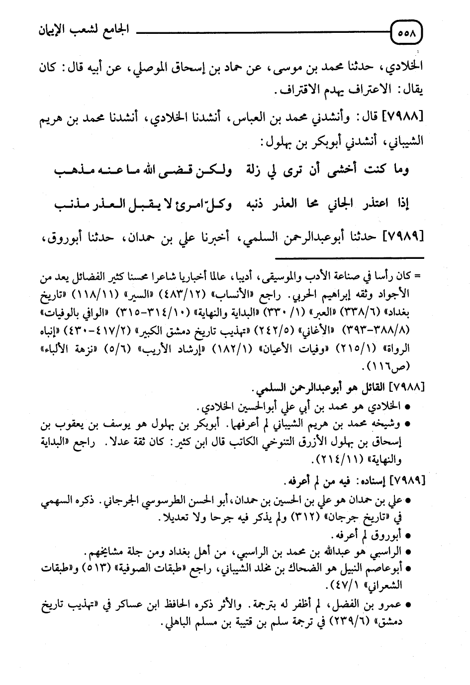 7988 - قَالَ: وَأَنْشَدَنِي مُحَمَّدُ بْنُ الْعَبَّاسِ، أَنْشَدَنَا الْخَلَّادِيُّ، أَنْشَدَنَا مُحَمَّدُ بْنُ هُرَيْمٍ الشَّيْبَانِيُّ، أَنْشِدْنِي أَبُو بَكْرِ بْنُ بُهْلُولٍ:"