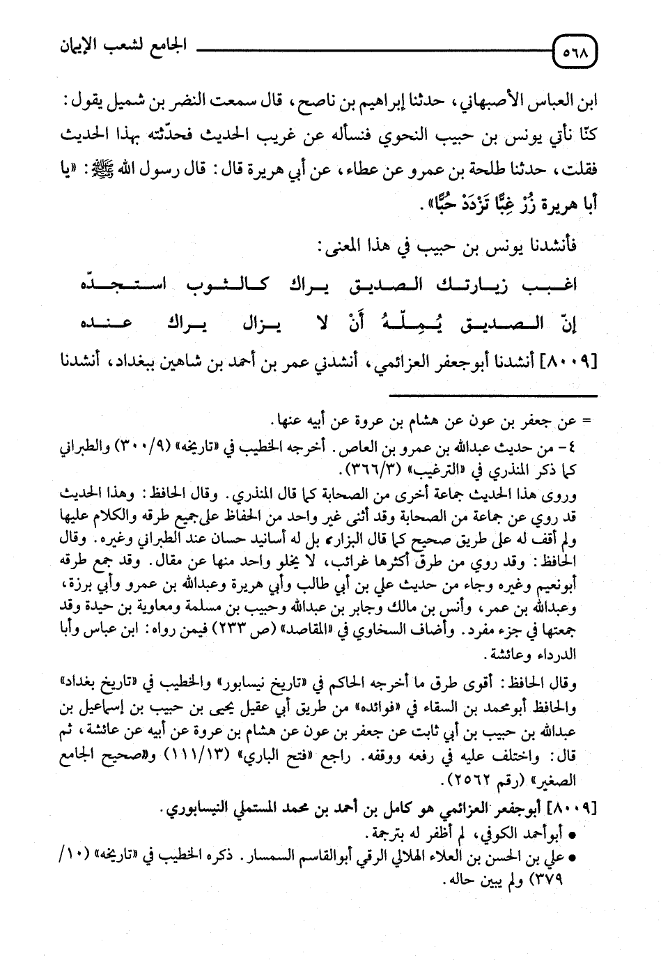 8009 - أَنْشَدَنَا أَبُو جَعْفَرٍ الْعَزَائِمِيُّ، أَنْشِدْنِي عُمَرُ بْنُ أَحْمَدَ بْنِ شَاهِينَ بِبَغْدَادَ، أَنْشَدَنَا -[569]- أَبُو أَحْمَدَ الْكُوفِيُّ، أَنْشَدَنَا عَلِيُّ بْنُ الْحَسَنِ بْنِ الْعَلَاءِ الْهِلَالِيُّ الرَّقِّيُّ:"