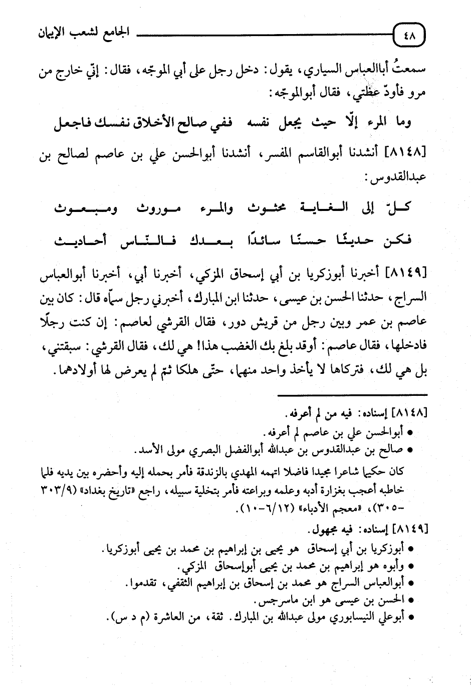 8148 - أَنْشَدَنَا أَبُو الْقَاسِمِ الْمُفَسِّرِ، أَنْشَدَنَا أَبُو الْحَسَنِ عَلِيُّ بْنُ عَاصِمٍ لِصَالِحِ بْنِ عَبْدِ الْقُدُّوسِ:"