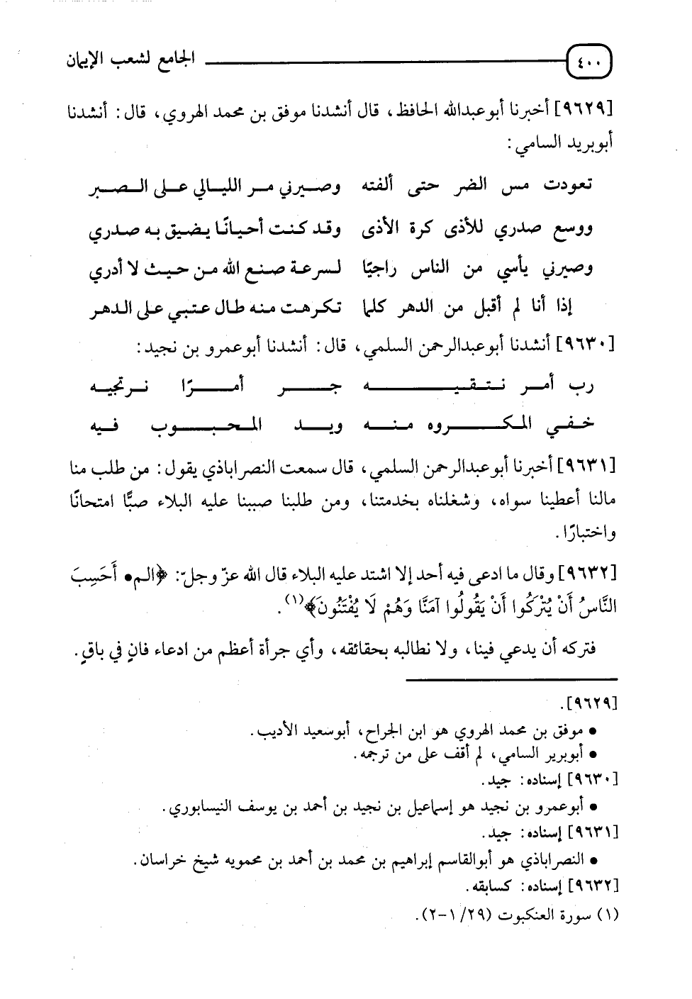 9630 - أَنْشَدَنَا أَبُو عَبْدِ الرَّحْمَنِ السُّلَمِيُّ , قَالَ: أَنْشَدَنَا أَبُو عَمْرِو بْنُ نُجَيْدٍ: