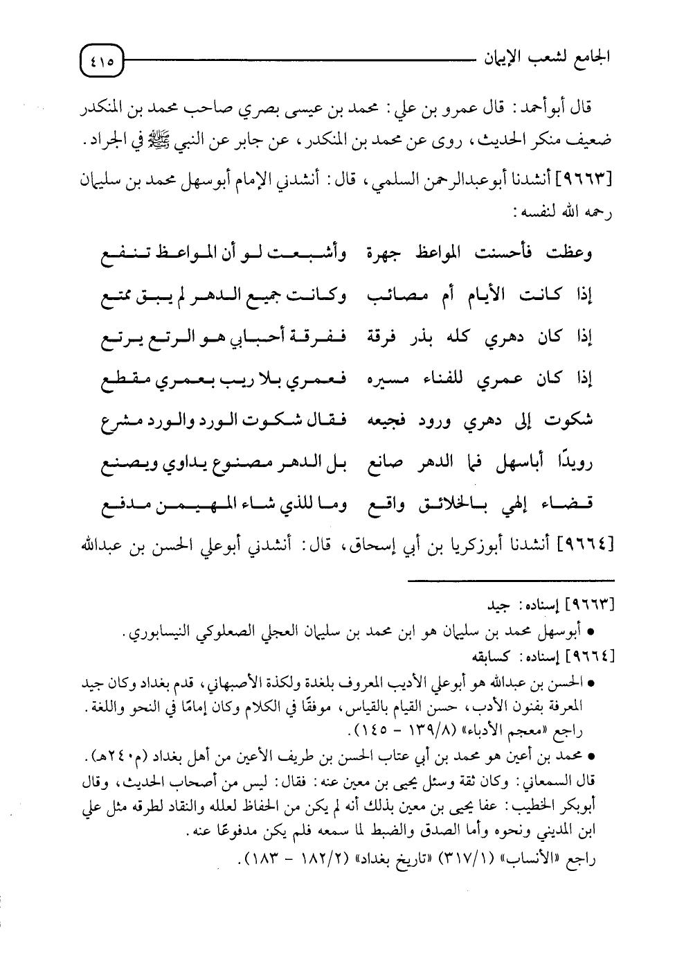 9663 - أَنْشَدَنَا أَبُو عَبْدِ الرَّحْمَنِ السُّلَمِيُّ , قَالَ: أَنْشَدَنِي الْإِمَامُ أَبُو سَهْلٍ مُحَمَّدُ بْنُ سُلَيْمَانَ رَحِمَهُ اللهُ لِنَفْسِهِ: فَصْلٌ