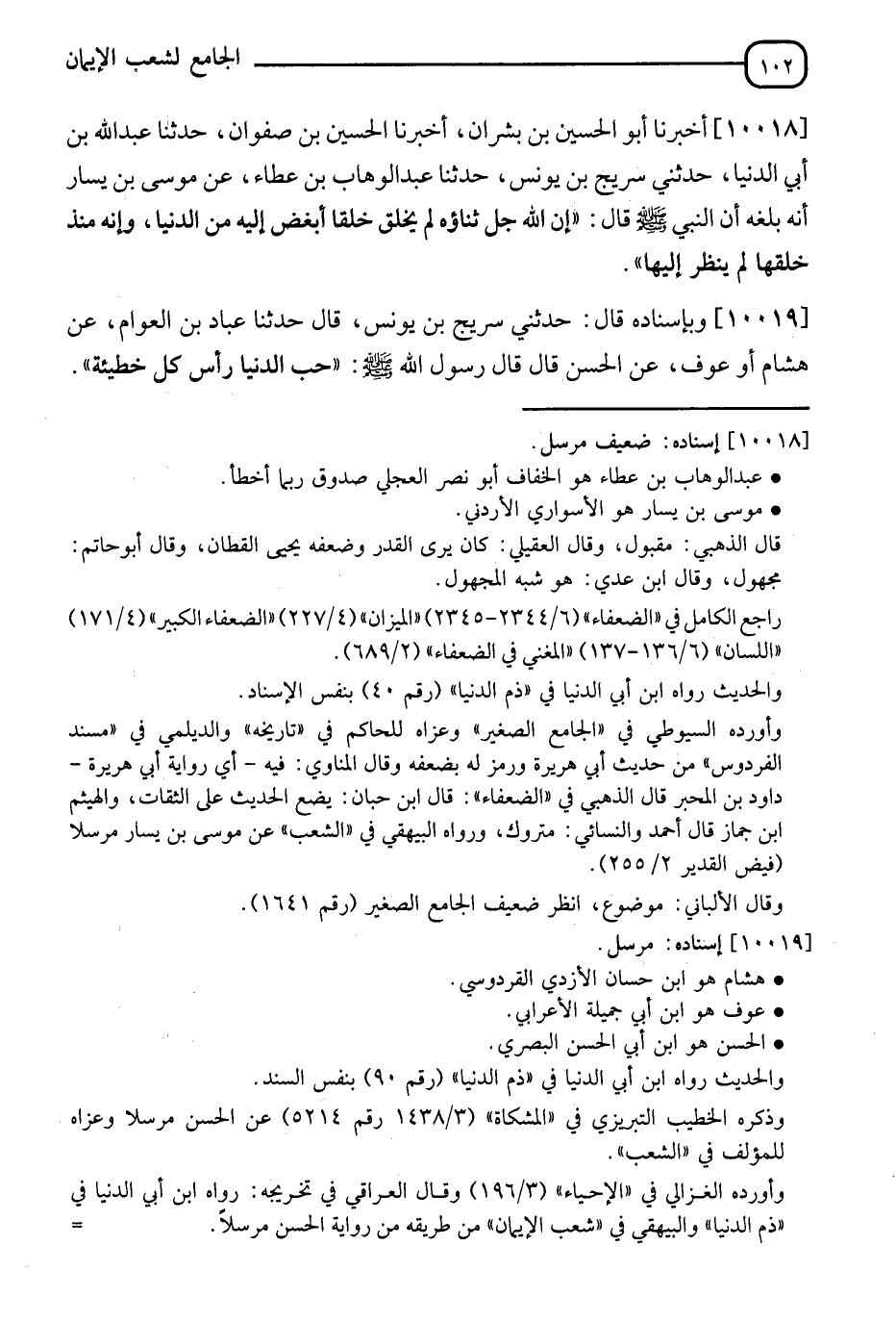 10019 - وَبِإِسْنَادِهِ قَالَ: حَدَّثَنِي سُرَيْجُ بْنُ يُونُسَ، قَالَ: ثَنَا عَبَّادُ بْنُ الْعَوَّامِ، عَنْ هِشَامٍ، أَوْ عَوْفٍ، عَنِ الْحَسَنِ، قَالَ: قَالَ رَسُولُ اللهِ صَلَّى اللَّهُ عَلَيْهِ وَسَلَّمَ: §" حُبُّ الدِّينَارِ رَأْسُ كُلِّ خَطِيئَةٍ "