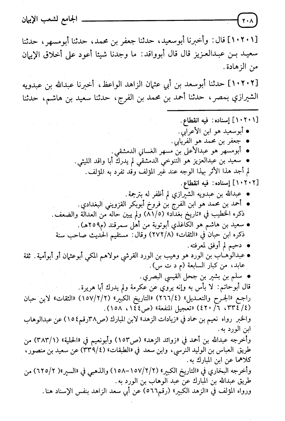 10201 - قَالَ: وَأَنَا أَبُو سَعِيدٍ، نَا جَعْفَرُ بْنُ مُحَمَّدٍ، نَا أَبُو مُسْهِرٍ، نَا سَعِيدُ بْنُ عَبْدِ الْعَزِيزِ، قَالَ: قَالَ أَبُو وَاقِدٍ: §" مَا وَجَدْنَا شَيْئًا أَعْوَدَ عَلَى الْأَخْلَاقِ الْإِيمَانِ مِنَ الزَّهَادَةِ "