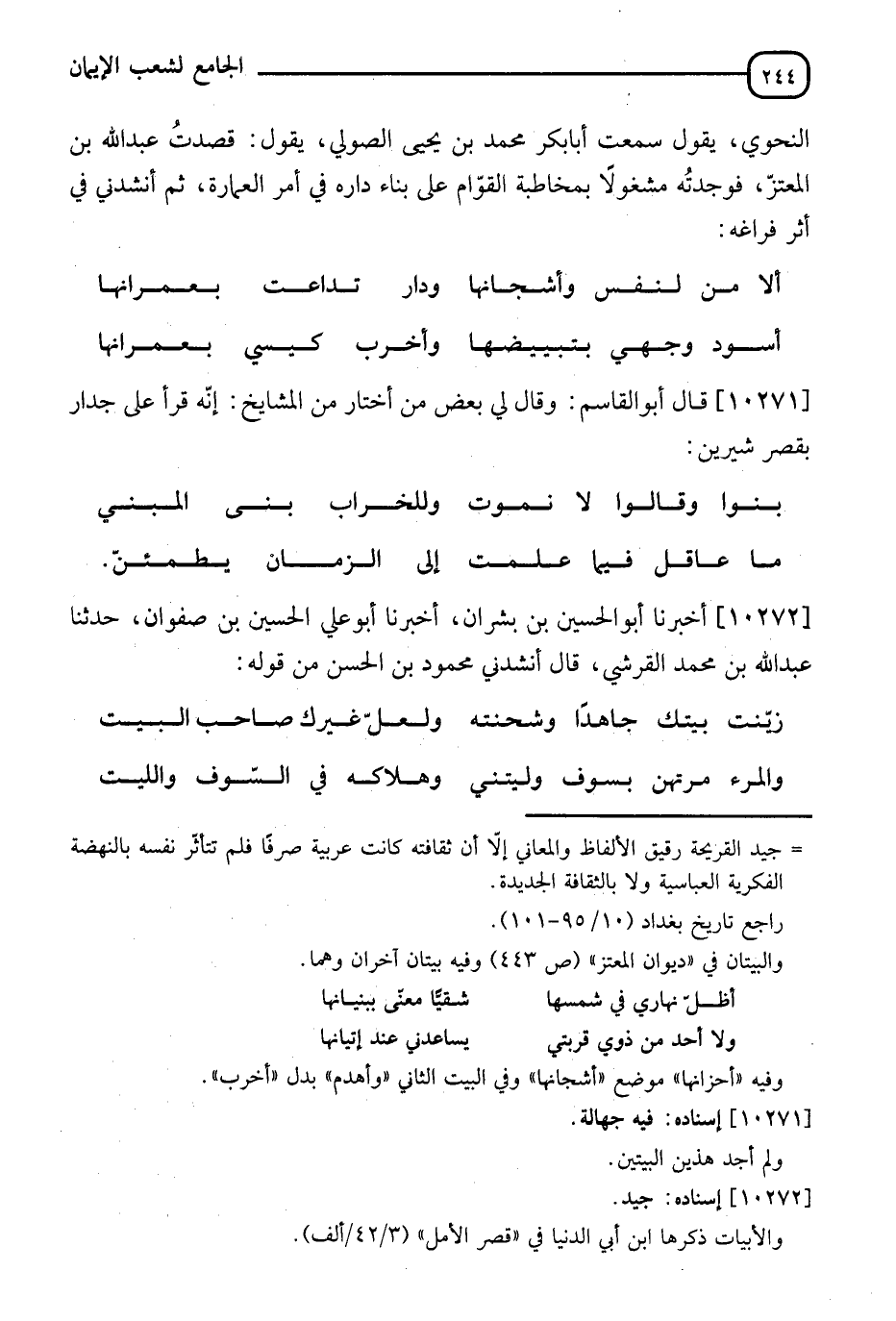 §زَيَّنْتَ بَيْتَكَ جَاهِدًا وَنَحَيْتَهُ ... وَلَعَلَّ غَيْرُكَ صَاحِبَ الْبَيْتِ