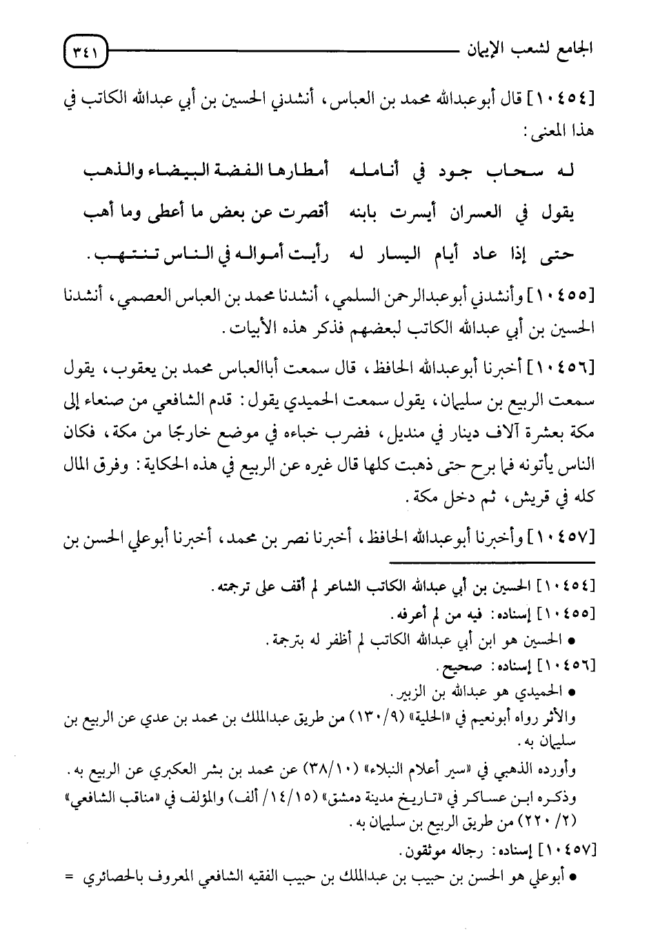 10454 - قَالَ أَبُو عَبْدِ اللهِ مُحَمَّدُ بْنُ الْعَبَّاسِ، فَأَنْشَدَنِي الْحُسَيْنُ بْنُ عَبْدِ اللهِ الْكَاتِبُ فِي هَذَا الْمَعْنَى: