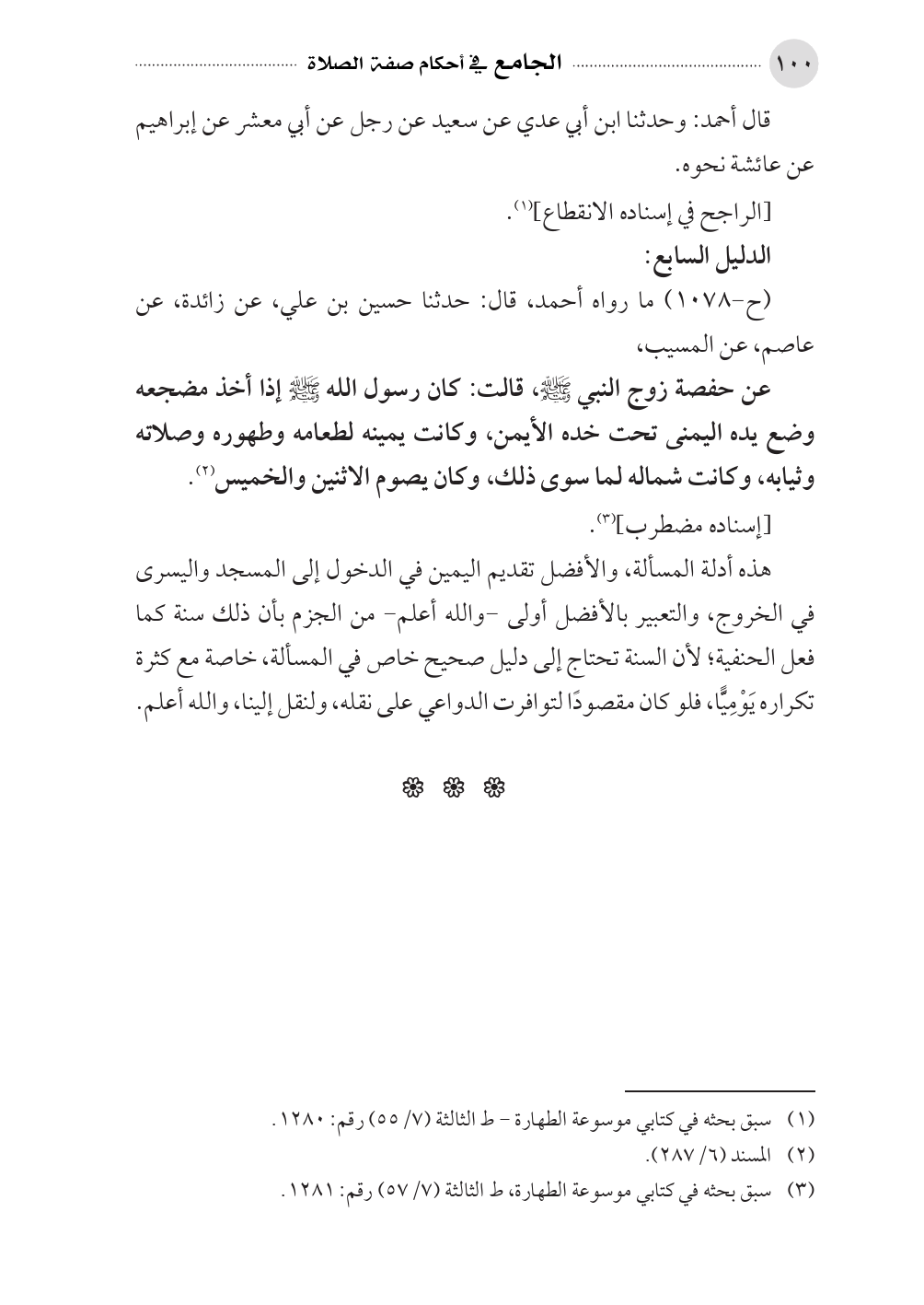 (¬٣). سبق بحثه في كتابي موسوعة الطهارة، ط الثالثة (٧/ ٥٧) رقم: ١٢٨١.