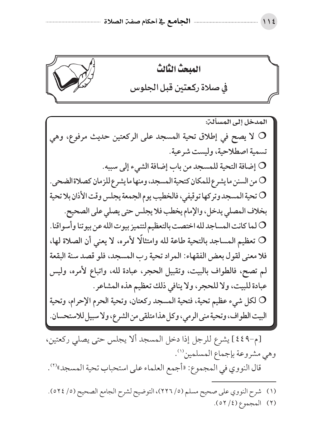 المبحث الثالث في صلاة ركعتين قبل الجلوس