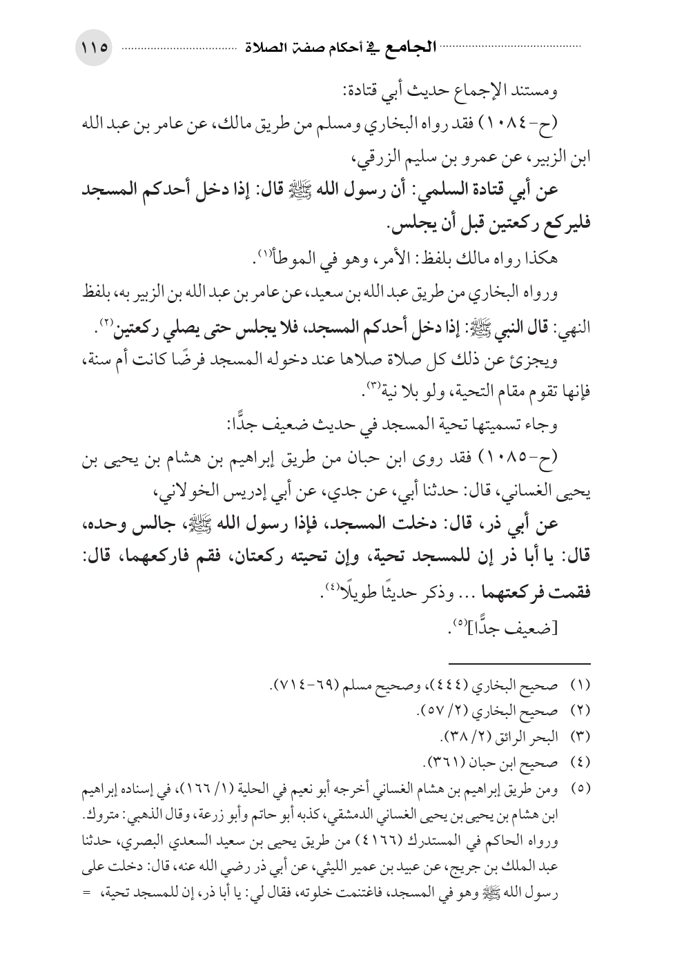 (¬١). صحيح البخاري (٤٤٤)، وصحيح مسلم (٦٩ - ٧١٤).