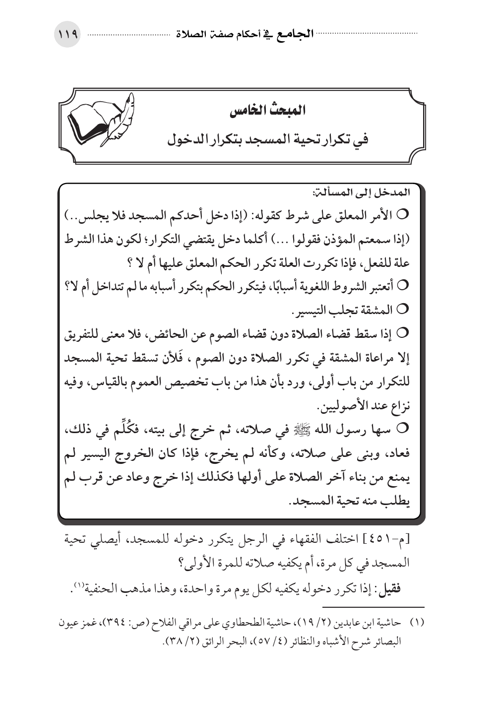 المبحث الخامس في تكرار تحية المسجد بتكرار الدخول