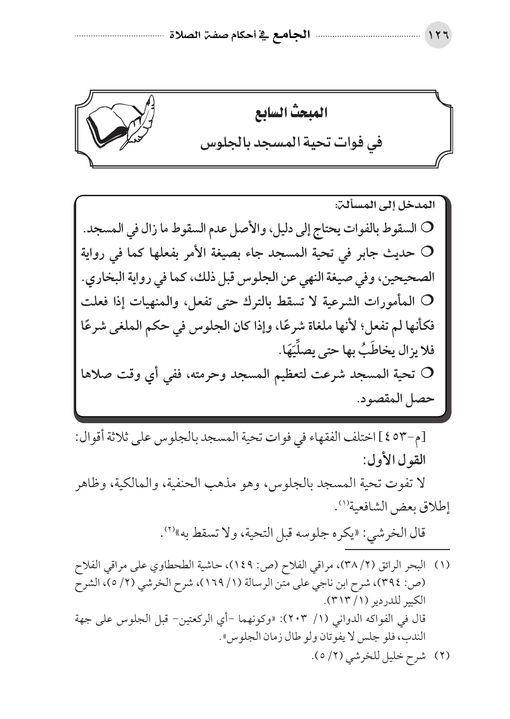 المبحث السابع في فوات تحية المسجد بالجلوس