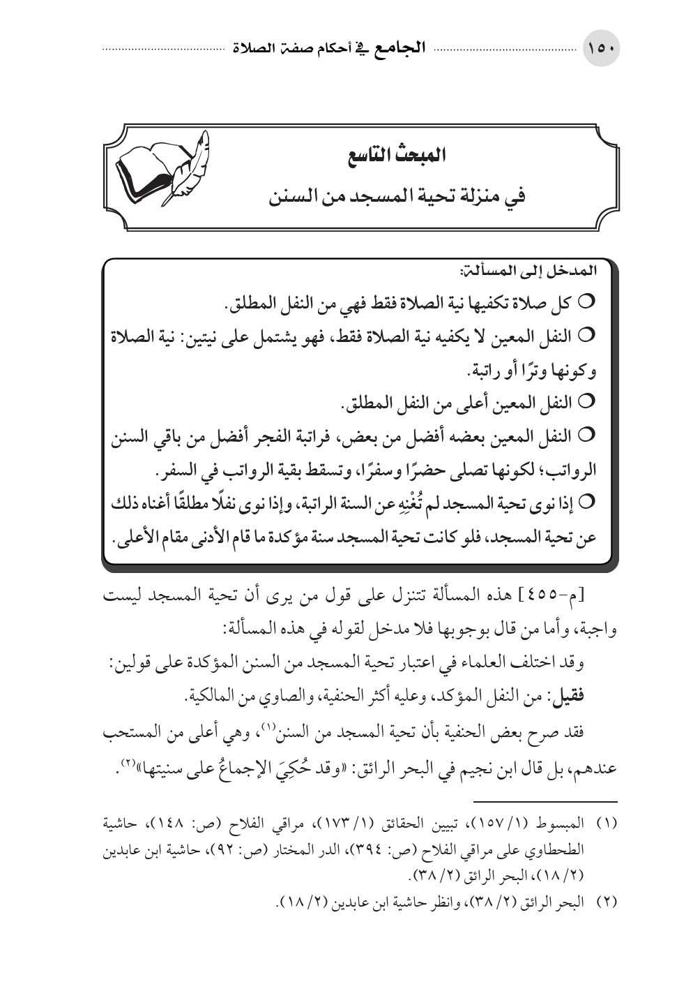 المبحث التاسع في منزلة تحية المسجد من السنن