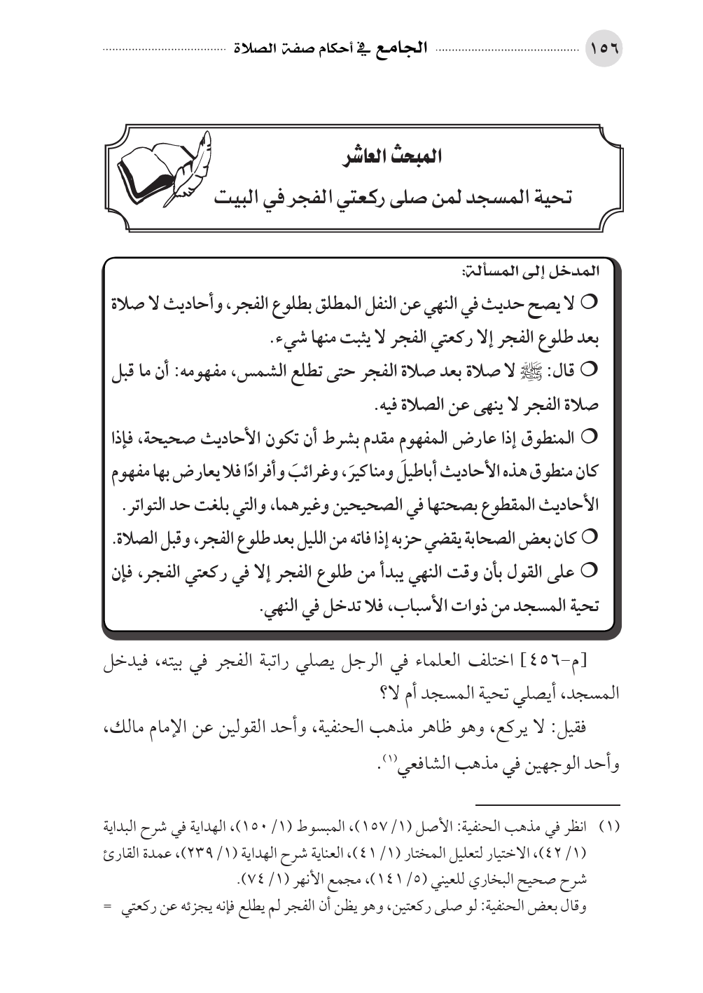 المبحث العاشر تحية المسجد لمن صلى ركعتي الفجر في البيت